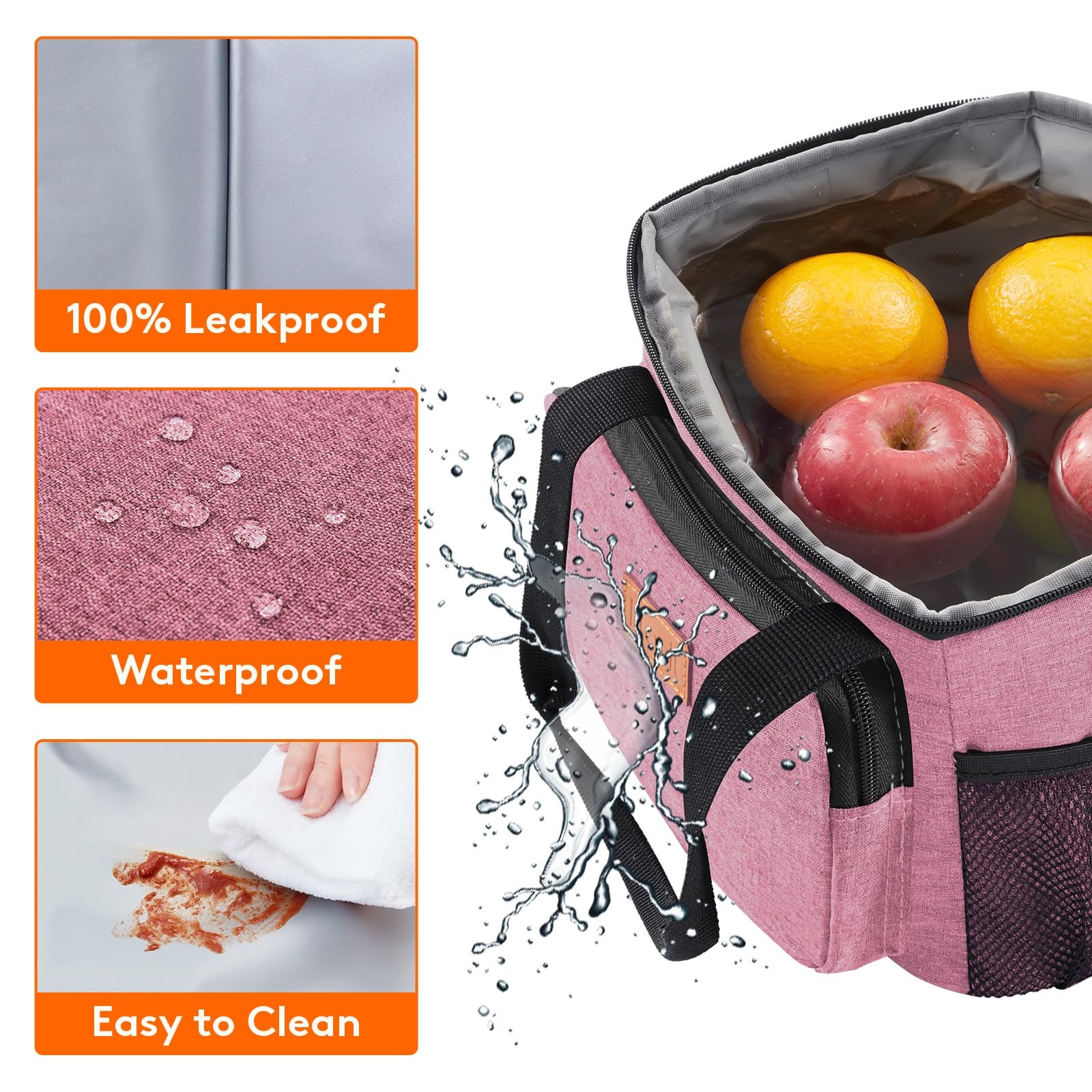 Leakproof & Waterproof: The exterior of lunch box for men is constructed out of 600D water-resistant dirt-proof Oxford fabric for durability and water proofing and easy cleaning. Even when full with water and ice, it holds fruits and drinks well, will not leak at all.