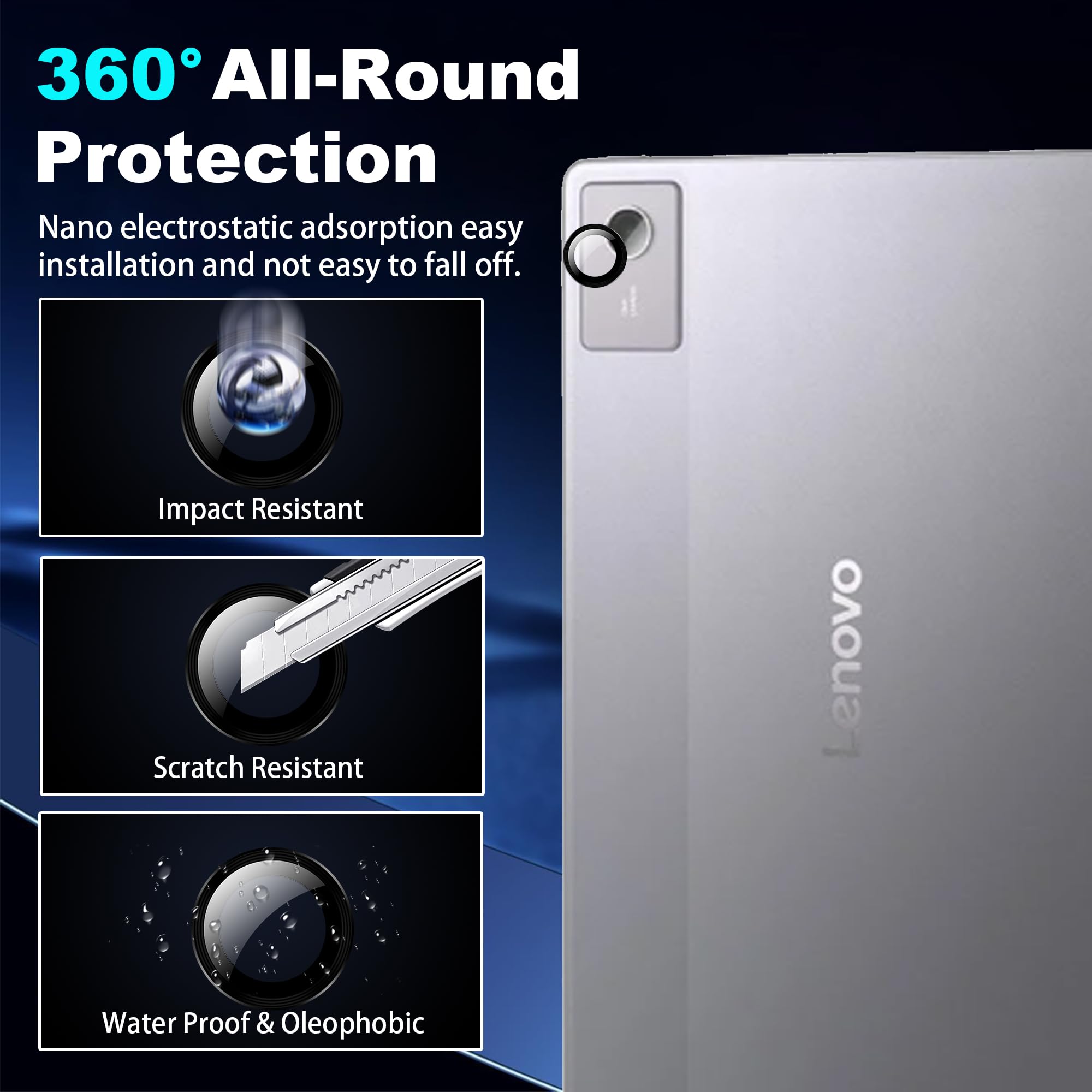 [Multi-protection] Made of high quality tempered glass with the highest hardness level of 9H, it protects your tablet screen and camera lens from accidental damage such as being scratched, squeezed or slightly dropped.