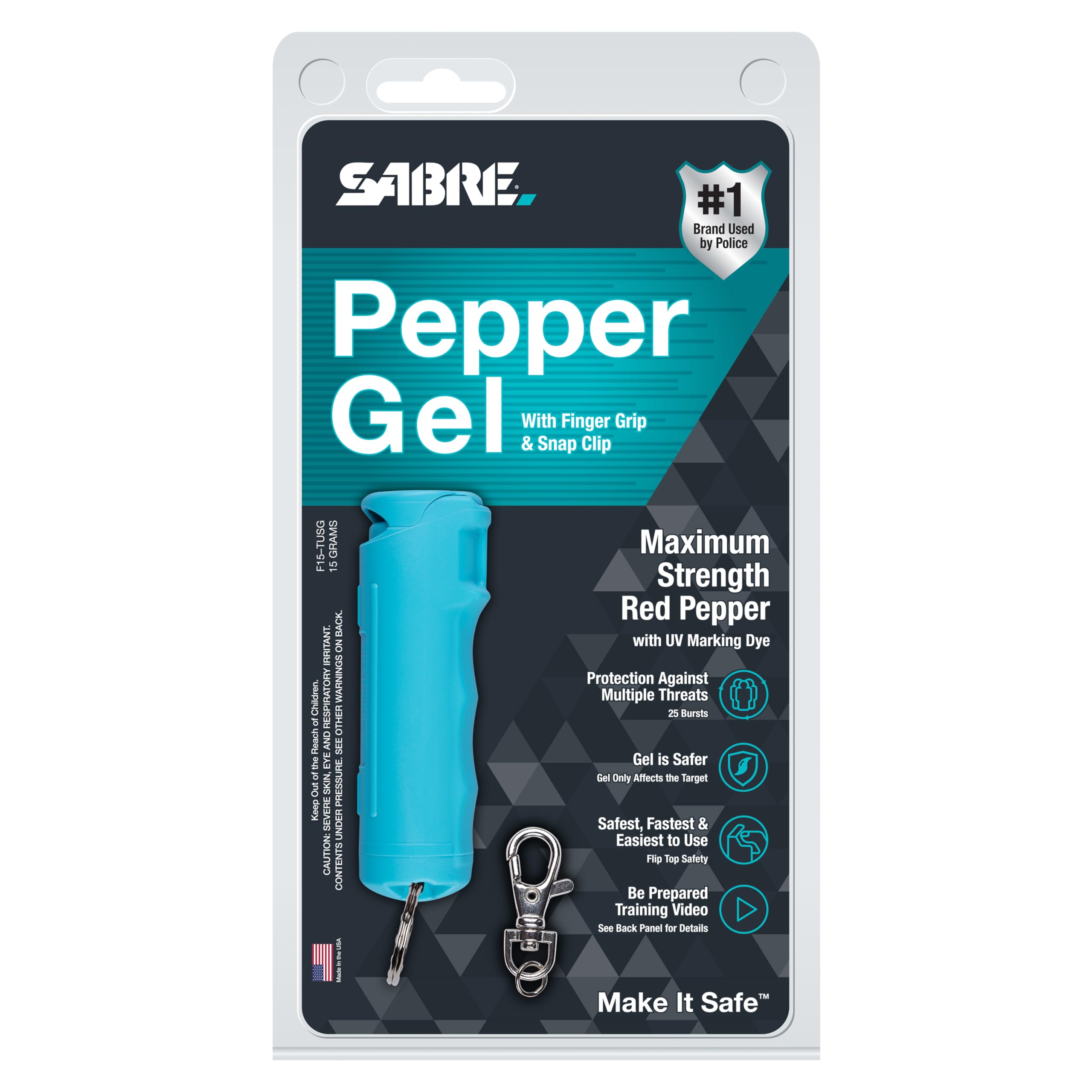 Spend more time enjoying the things you love to do and less time worrying with the confidence that comes from being prepared. The SABRE Pepper Gel with Finger Grip and Snap Clip can help you protect yourself from those that may not have your best interest in mind by providing maximum strength protection that’s easily carried on the go. This pepper gel contains 3X longer spray time (5x the competition) for protection against multiple threats from a safe distance. Pepper gel is safe to use indoors as it does not atomize like traditional pepper sprays and is deployed in a powerful gel stream, virtually eliminating wind blowback. UV marking dye helps the authorities identify an attacker after they’re sprayed. An ergonomic finger grip helps to improve your aim and gives you more control while using your pepper gel. A flip top safety prevents an accidental discharge in your purse or bag. Snap clip attachment easily snaps onto keys or bags for quick access to your protection if needed. SABRE Pepper Gel is made in USA. Family owned and operated for more than 45 years, SABRE is the #1 brand trusted by consumers worldwide for pepper spray and is a leader in developing safety programs and safety videos to maximize end users’ safety. Empower yourself with extreme stopping power when you need it most.