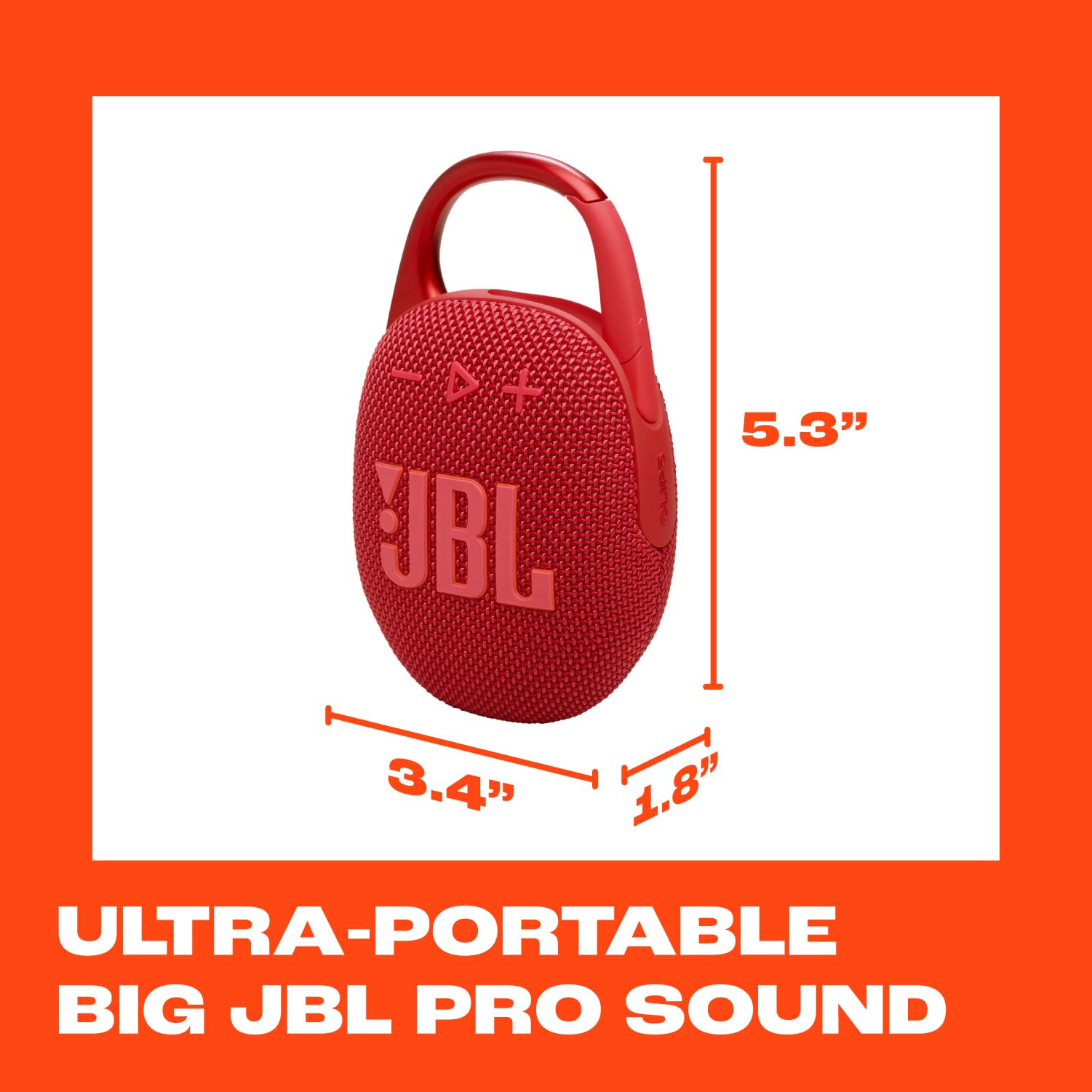 Ultra-portable JBL Pro Sound: Don't let its little size fool you. The JBL Clip 5 packs a serious musical punch, delivering big JBL Pro Sound with punchy bass. Your friends won't believe how much great JBL Pro Sound comes out of such a small speaker.
