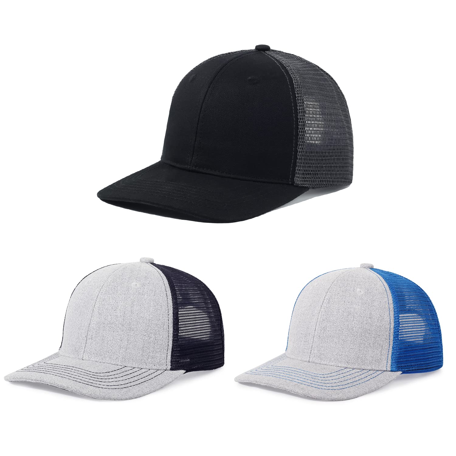 Premium Material: Our mesh trucker caps are made of 100% high-quality cotton fabric.The plain baseball caps can protect the sensitive scalp from UV damage. The material is soft, easy to pack and compress.