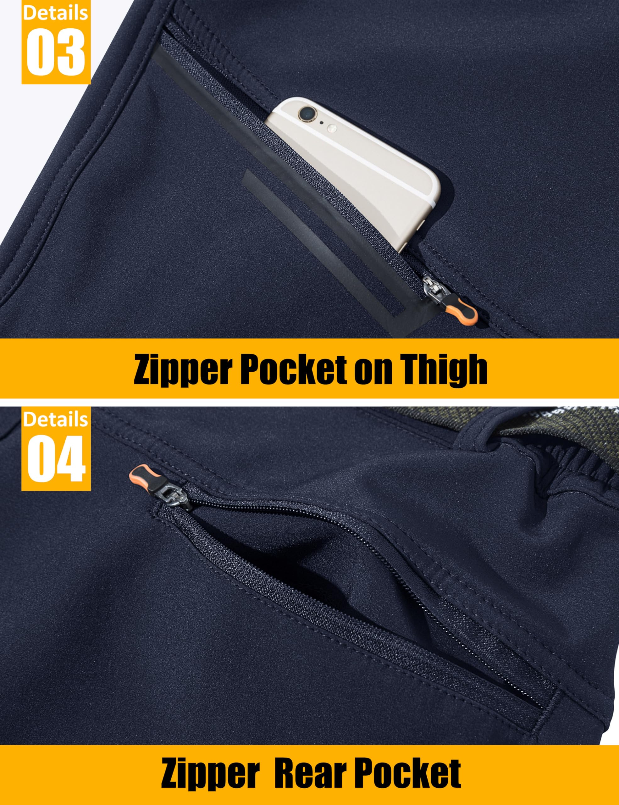 4 Zipper Pockets: 2 Zipper Hand Pokets, 1 Zipper pocket on right thigh and 1 Zipper Rear Pocket, Keeping Your Essentials Securely