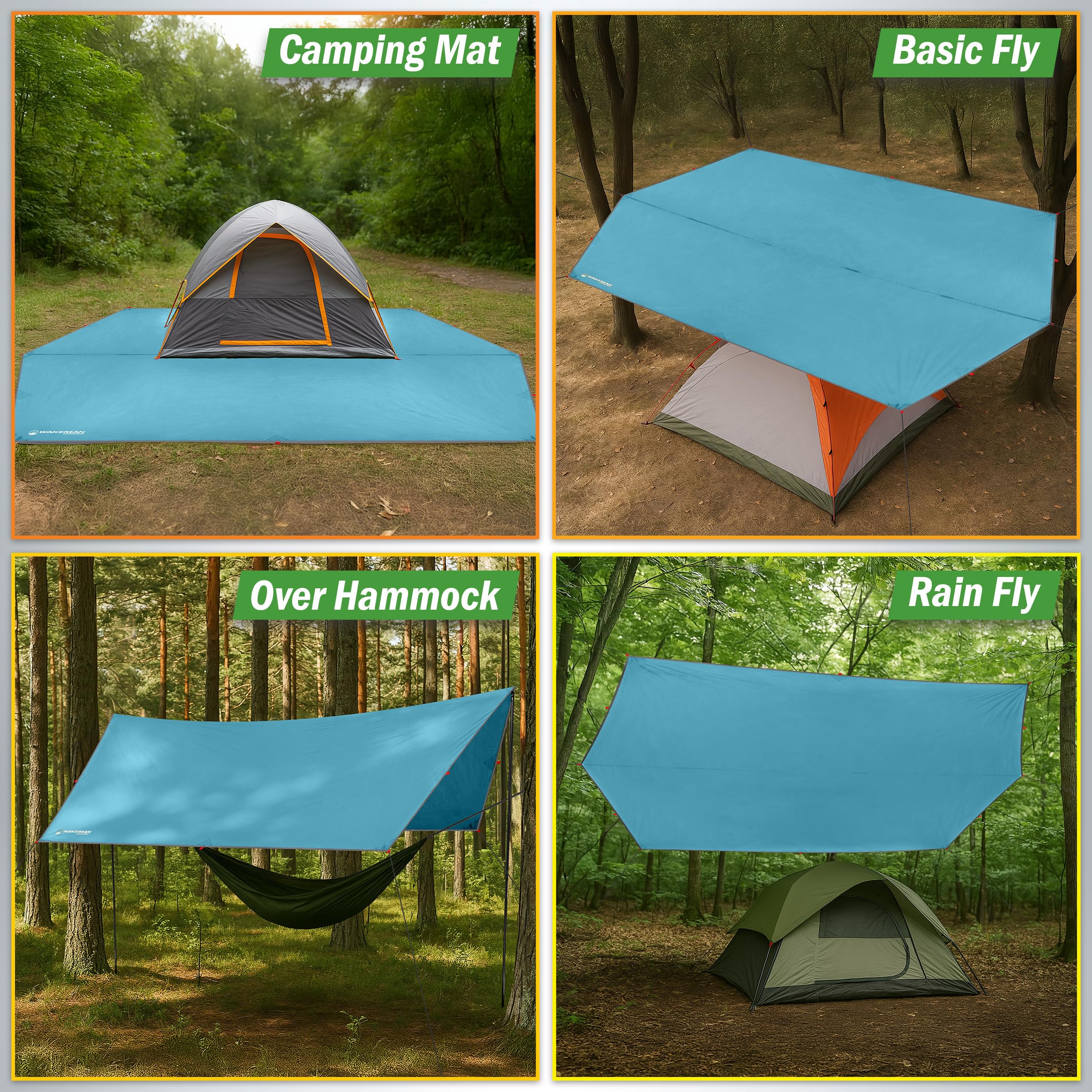 MULTIPURPOSE - This versatile piece of camping gear can be used as a backpacking tarp for emergency shelter on hiking trips, as a rain fly for hammock camping, as a shade tarp at the beach, or on hunting and fishing trips or any other outdoor adventure.