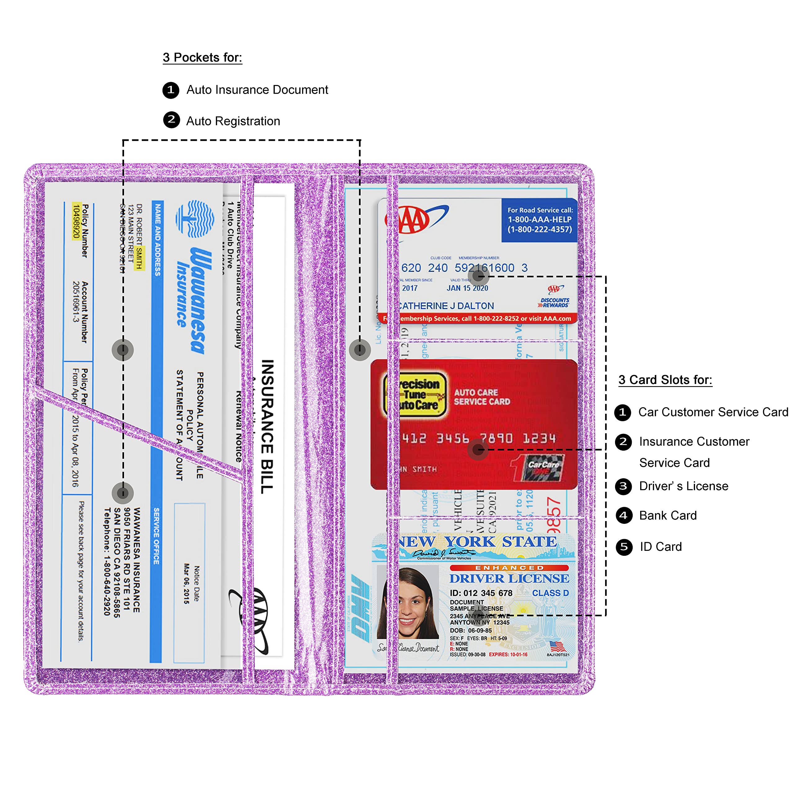 🌷Compact Size: With the perfect size dimensions of 5.0in x 9.4in x 0.4in, this vehicle license and registration holder for car will fit into glove compartments, sun visors, door holders, consoles, etc. The glove box organizer is precisely designed to fit all of your car documents.