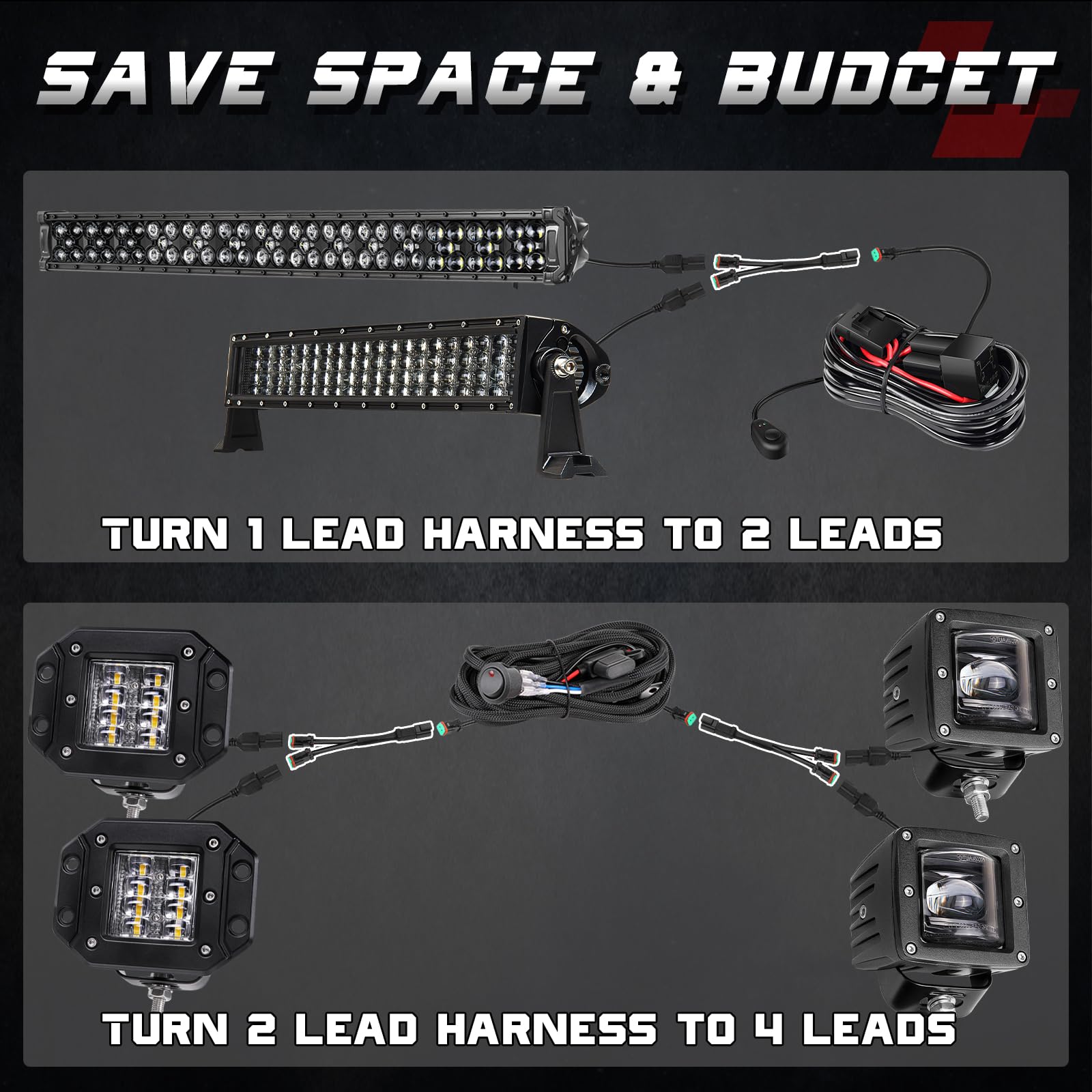CONNECT MORE LIGHTS - Using the connectors, one DT wiring harness can connect and control 2 or 4 LED lights, which makes control them easier while saving space and money