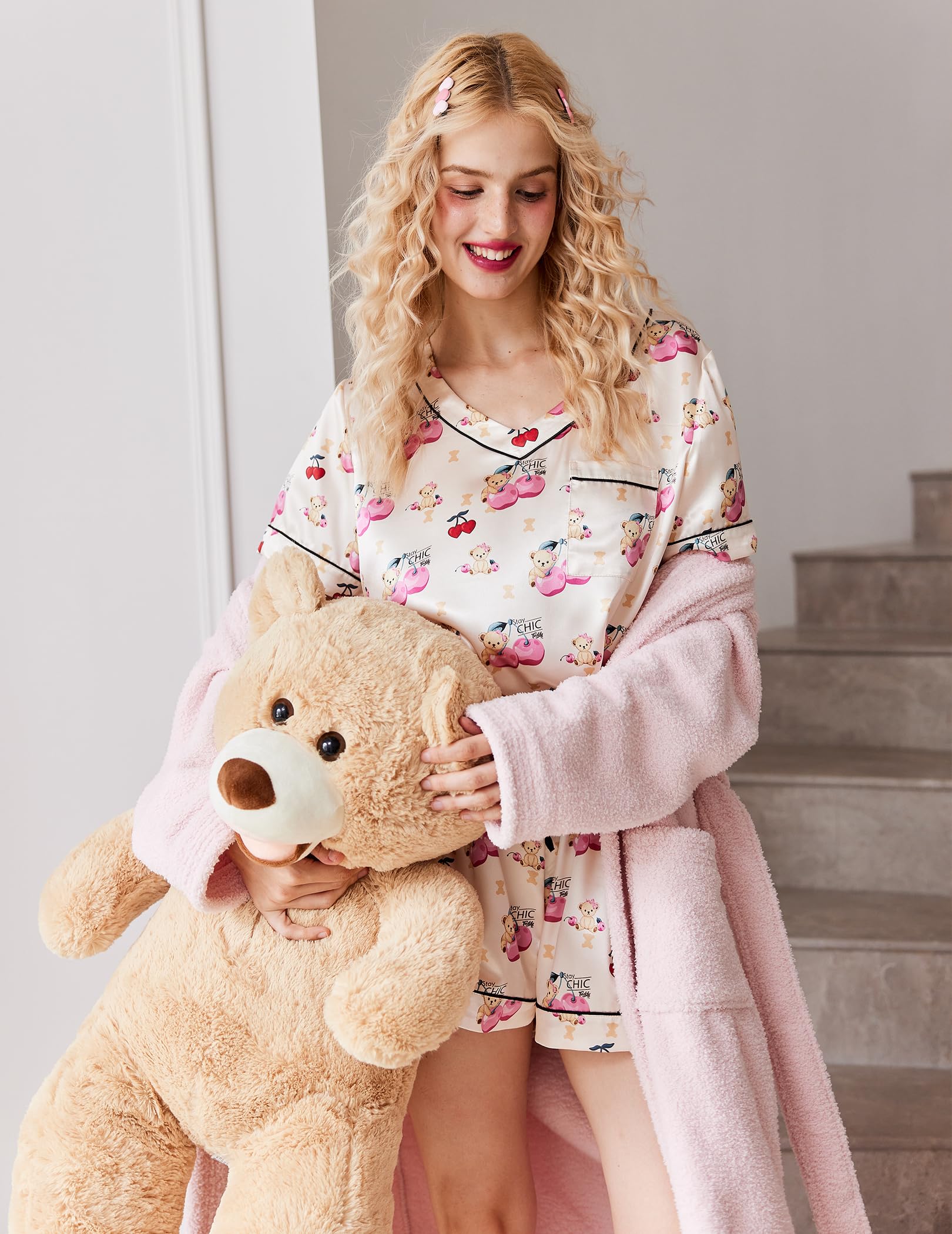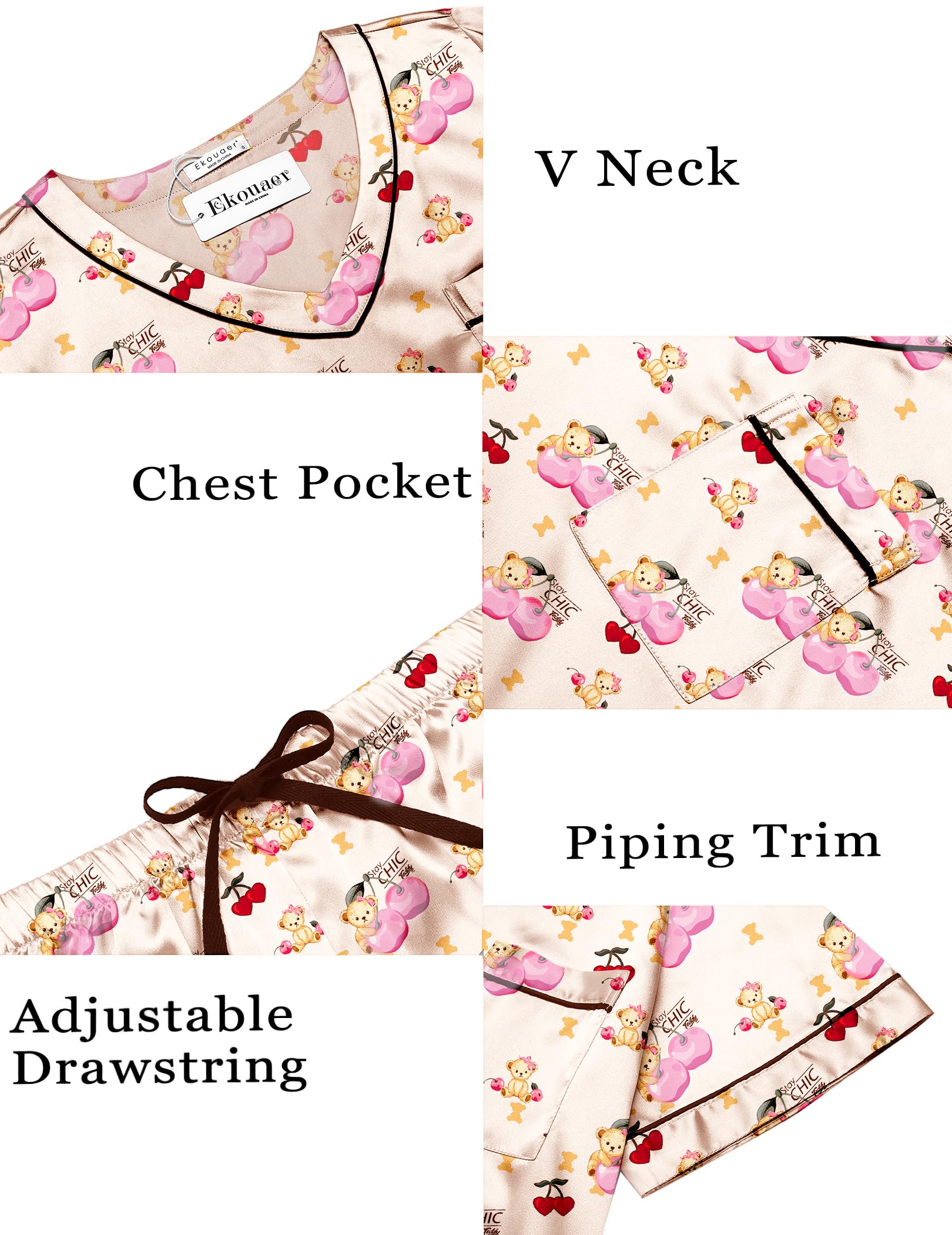 Kindly Remind: Ekoauer silk satin pajamas set are luxuriously stylish & soft to the touch! Washable with laundry bag or similar color clothing. Do not bleach,dry low.Gently press with a warm iron to modify packaging wrinkles before first time wear