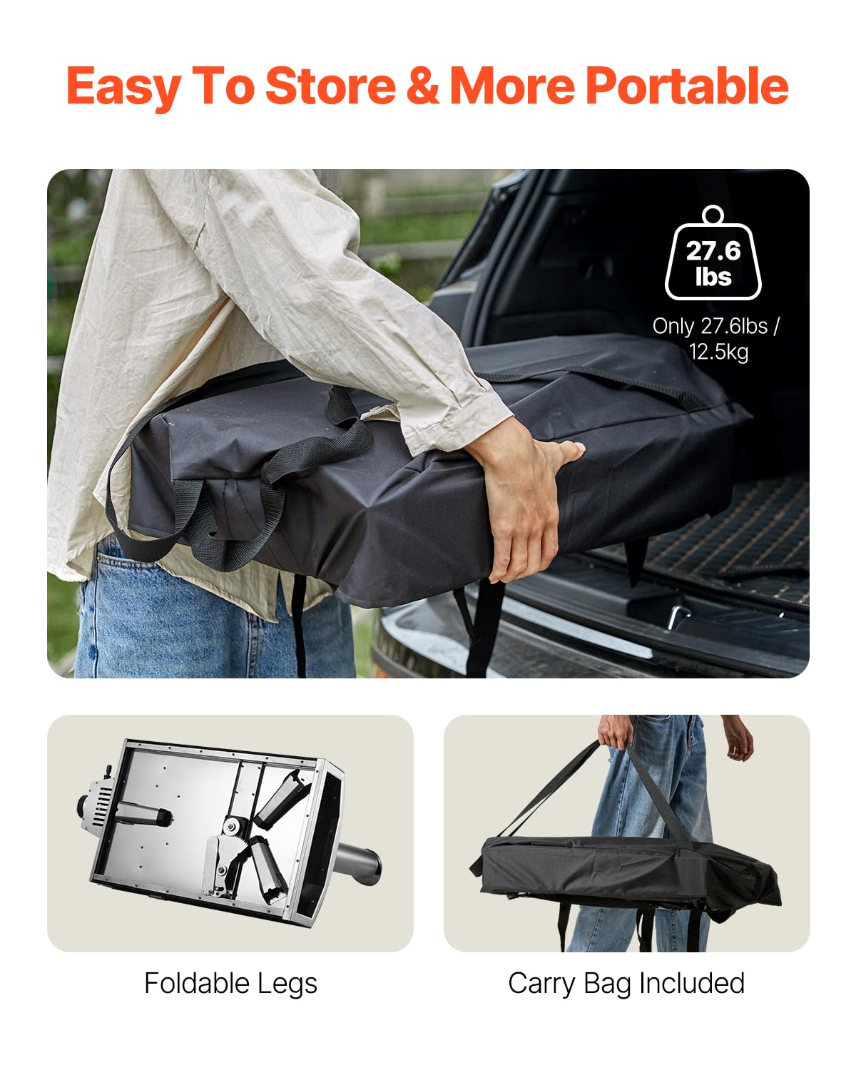 Portable Outdoor Oven: This pizza oven boasts a lightweight 28.9 lbs, making it easy to carry to your backyard, campsite, beach, or any outdoor gathering place. Its foldable legs make it even more compact, and we also provide a wood pellets shovel and carry bag for added convenience.
