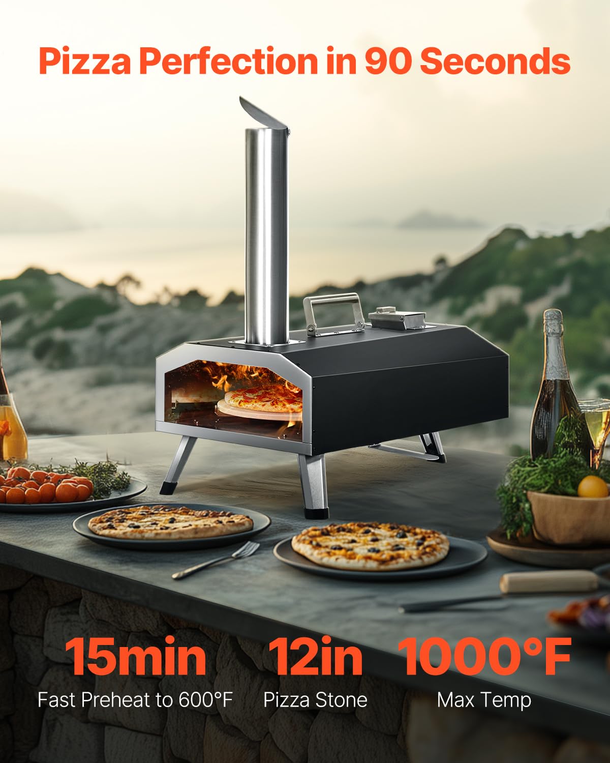 Bake Like Never Before: Are you tired of pizza ovens that just don't do what they are supposed to? Our outdoor pizza oven heats up to 1000℉/540℃ in just 15 minutes and bakes a tasty 12-inch pizza in 90 seconds or less! Plus, it's versatile enough to cook all kinds of meats, fish, and delicious vegetables.