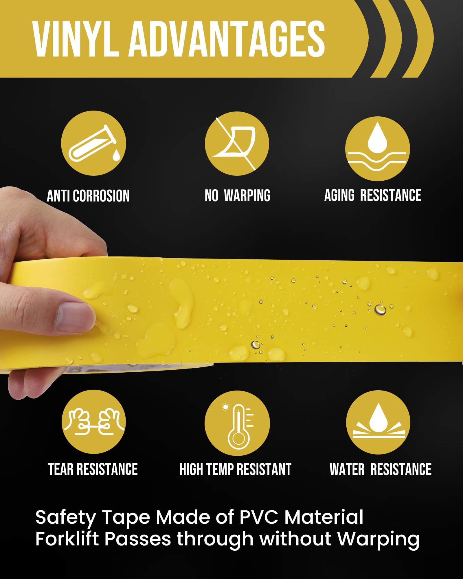 Exceptionally Resilient: 6 mil thick, Safety Tape boasts durability; Engineered to resist abrasion and tearing, this high-quality vinyl tape also offers short-term high temperature resistance, ensuring reliability in demanding environment
