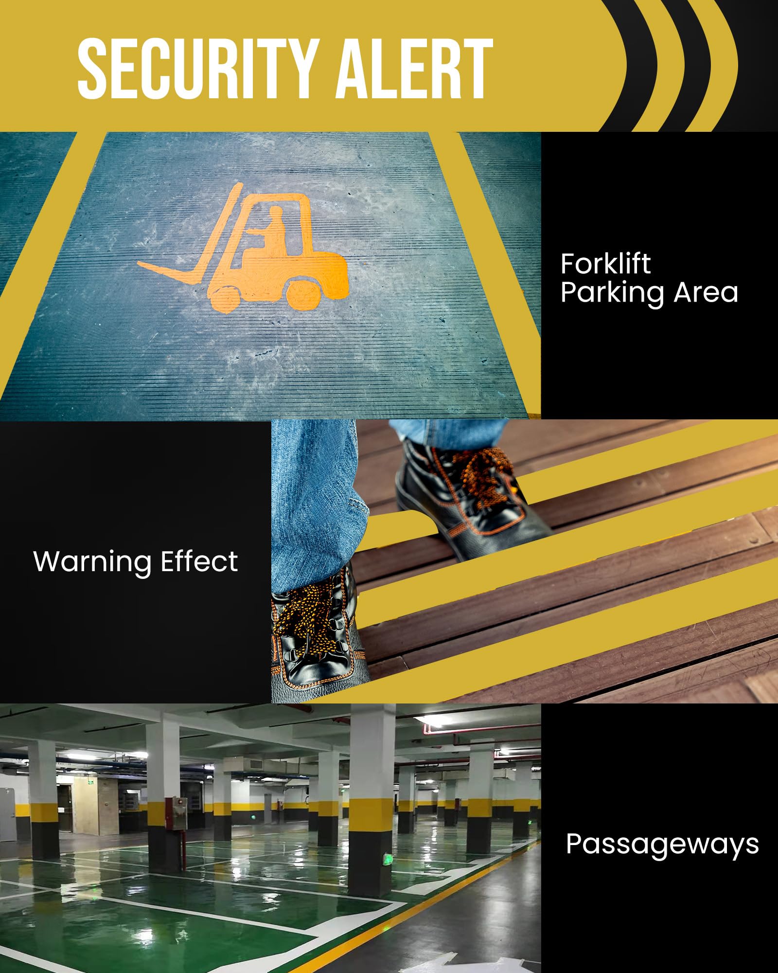 Wide application: Safety marking, Boundary Marking, Floor marking, Social Distance Marking, High Traffic Marking, construction hazard areas marking, for Forklift Traffic, Prevent Lifting and Tearing, marking depot aisles, storage areas, pathways