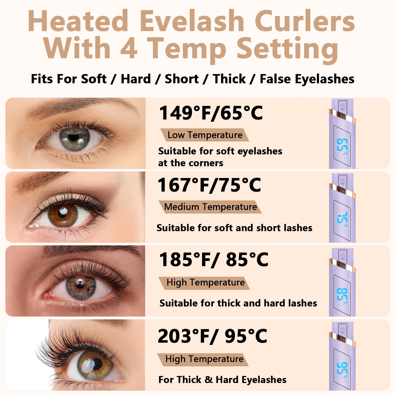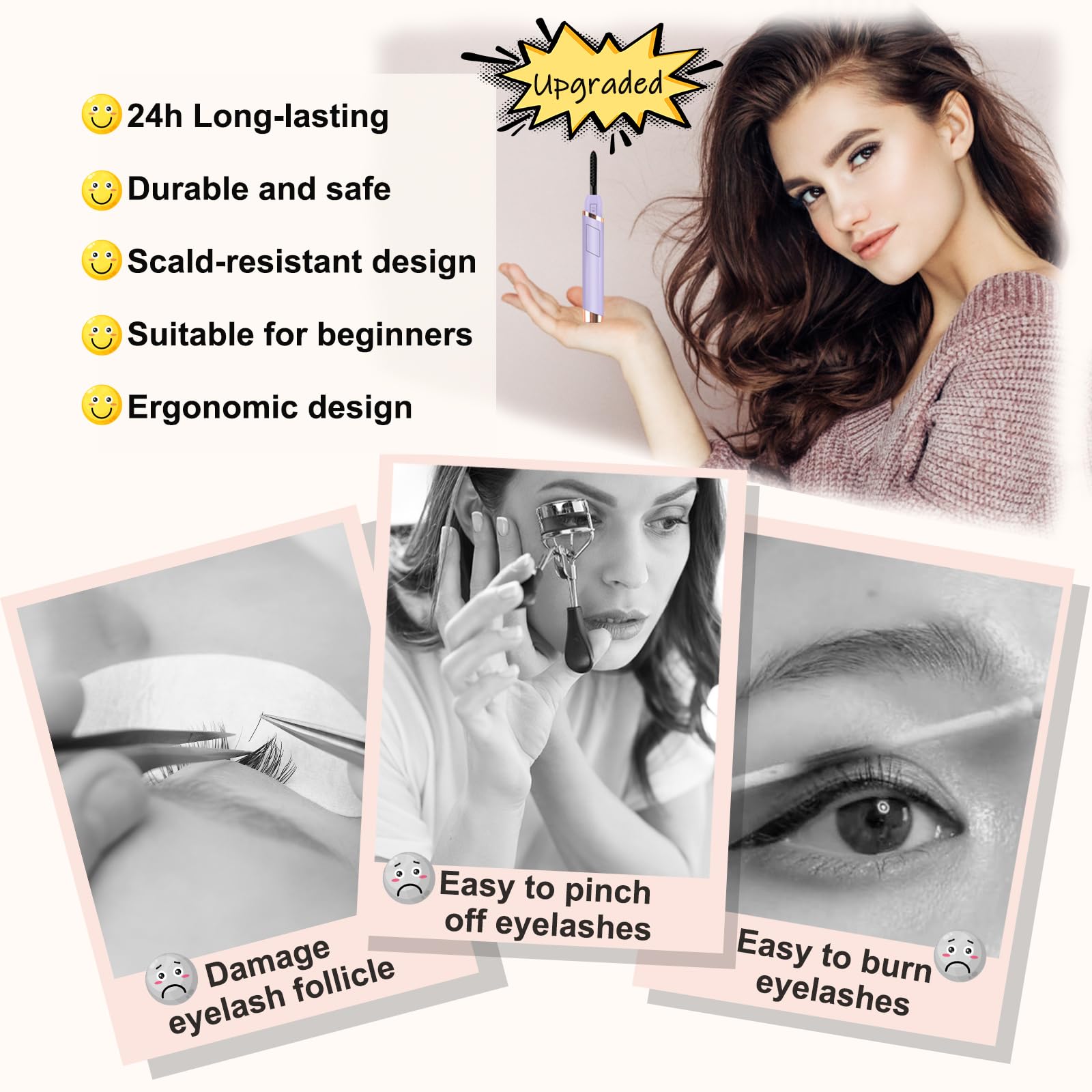 10s Fast Heating: Heated lash curlers heat up in 10 seconds, no need long times. designed for optimal separation, works effortlessly with mascara to achieve a natural, long-lasting curl that lasts up to 24 hrs, enhancing the natural eyes