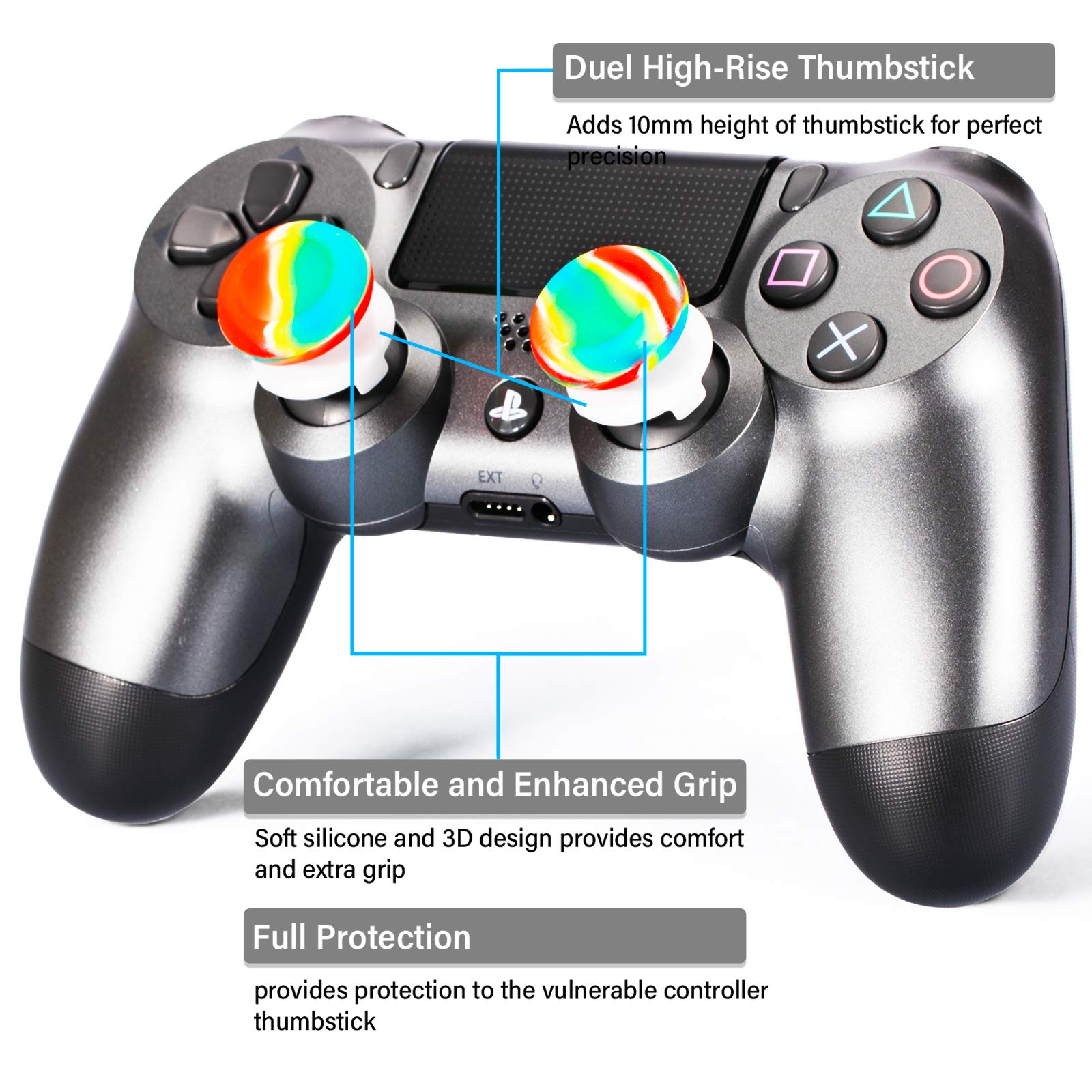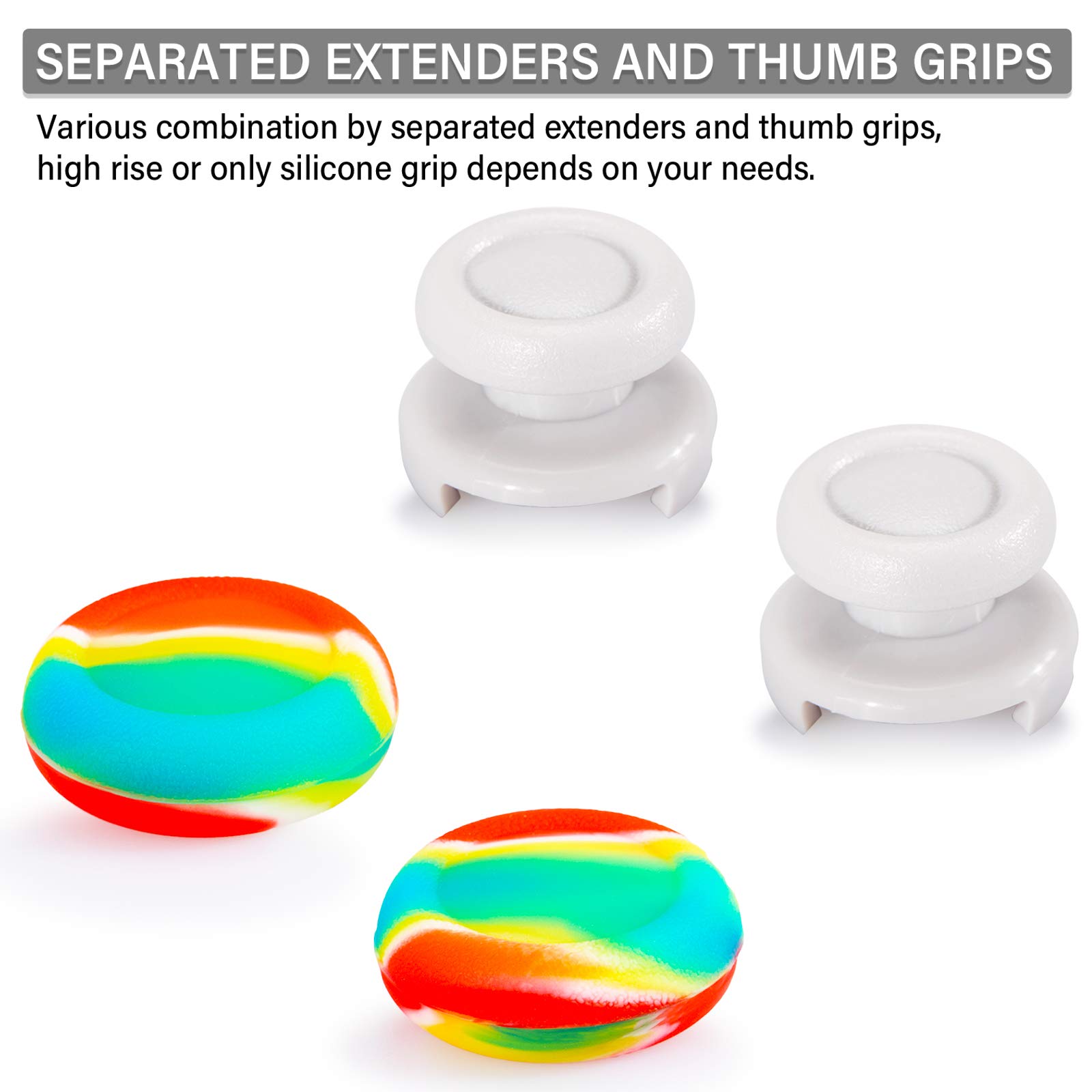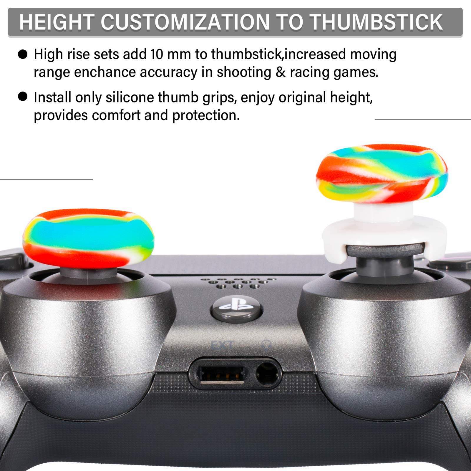 Different Height Options - Install extender & grips sets adds 10 mm height to the stick, enhances precision in shooting, racing games. Install only silicone thumb grips, enjoy original height and ideal comfort and protection;