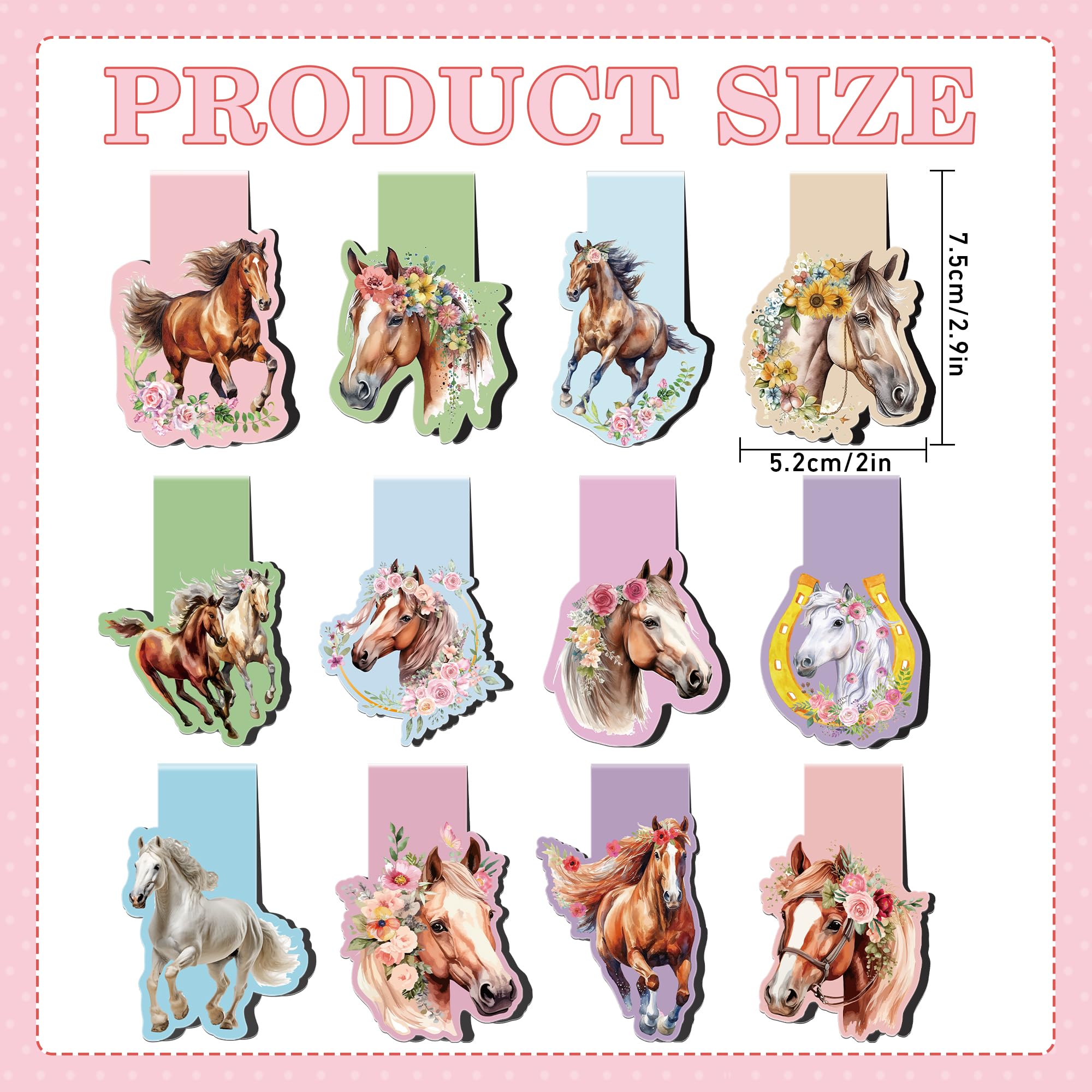 Beautiful Horse & Floral Designs: This set features 12 unique bookmarks, each with a distinct style of beautiful horses paired with vibrant floral patterns, adding a touch of elegance and nature to your reading experience