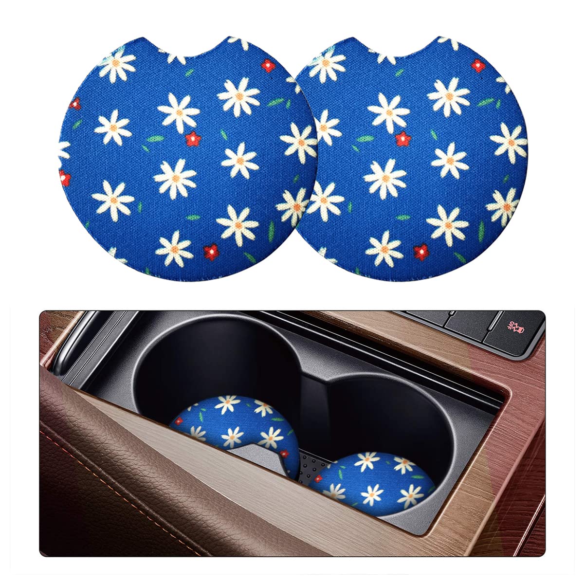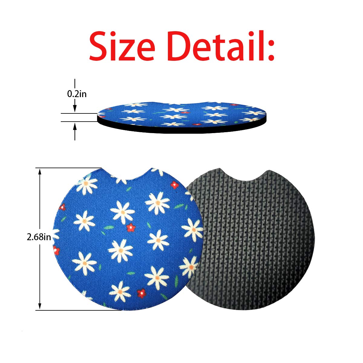 Colour and Size:A variety of colors for you to choose.These are sold in a set of 2 and measure 2.75 inches in diameter and are 0.16 inches in thickness.The car coasters are a universal size, but we still recommend measuring for your vehicle as every car is different.