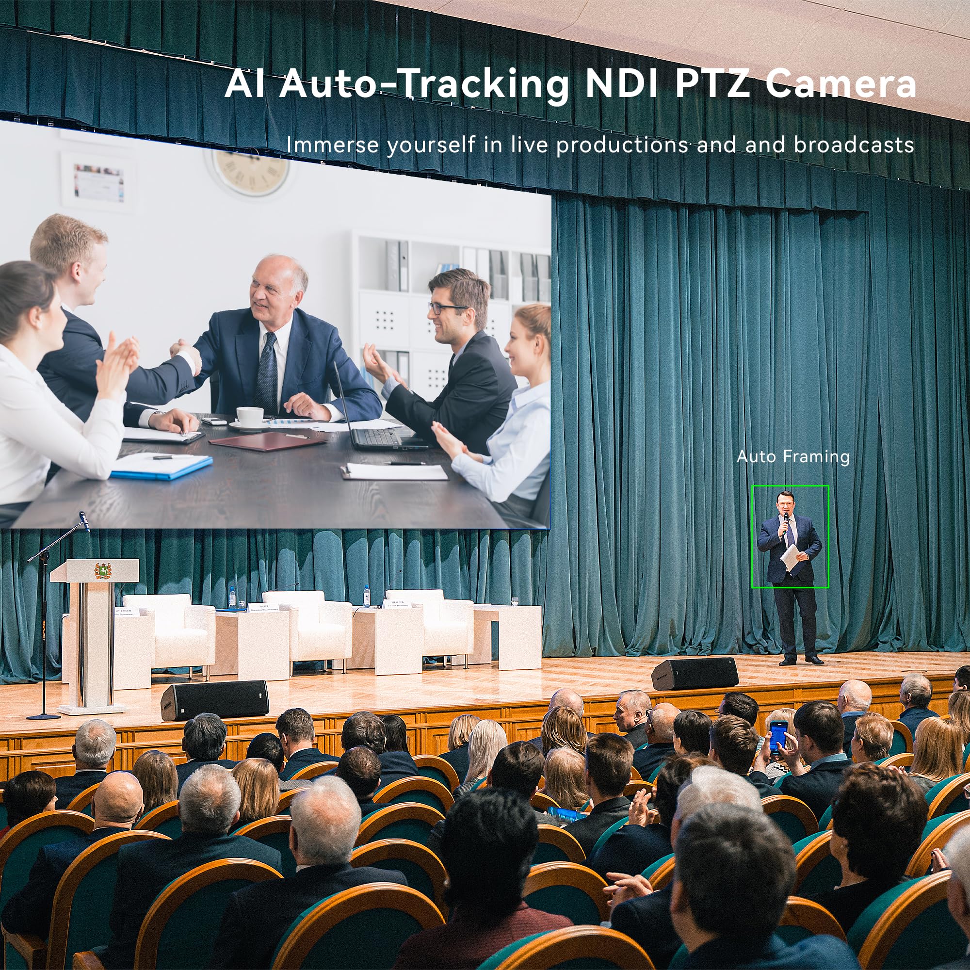 πTenveo πππππππ-πππ - 20X Optical +8X Digital Zoom AI Auto Tracking PTZ Camera with SDI/HDMI/USB3.0/LAN Interfaces, NDI and PoE supports, surprices you with a real color, sharp and crystal video quality. Support SRT, TCP/IP, HTTP, RTSP, RTMP, Onvif, DHCP, Multicast and other network protocols. Meanwhile, LINE IN and LINE OUT interfaces can be connected to audio devices, supporting simultaneous audio and video streaming(audio device is not included), meeting all your streaming needs.