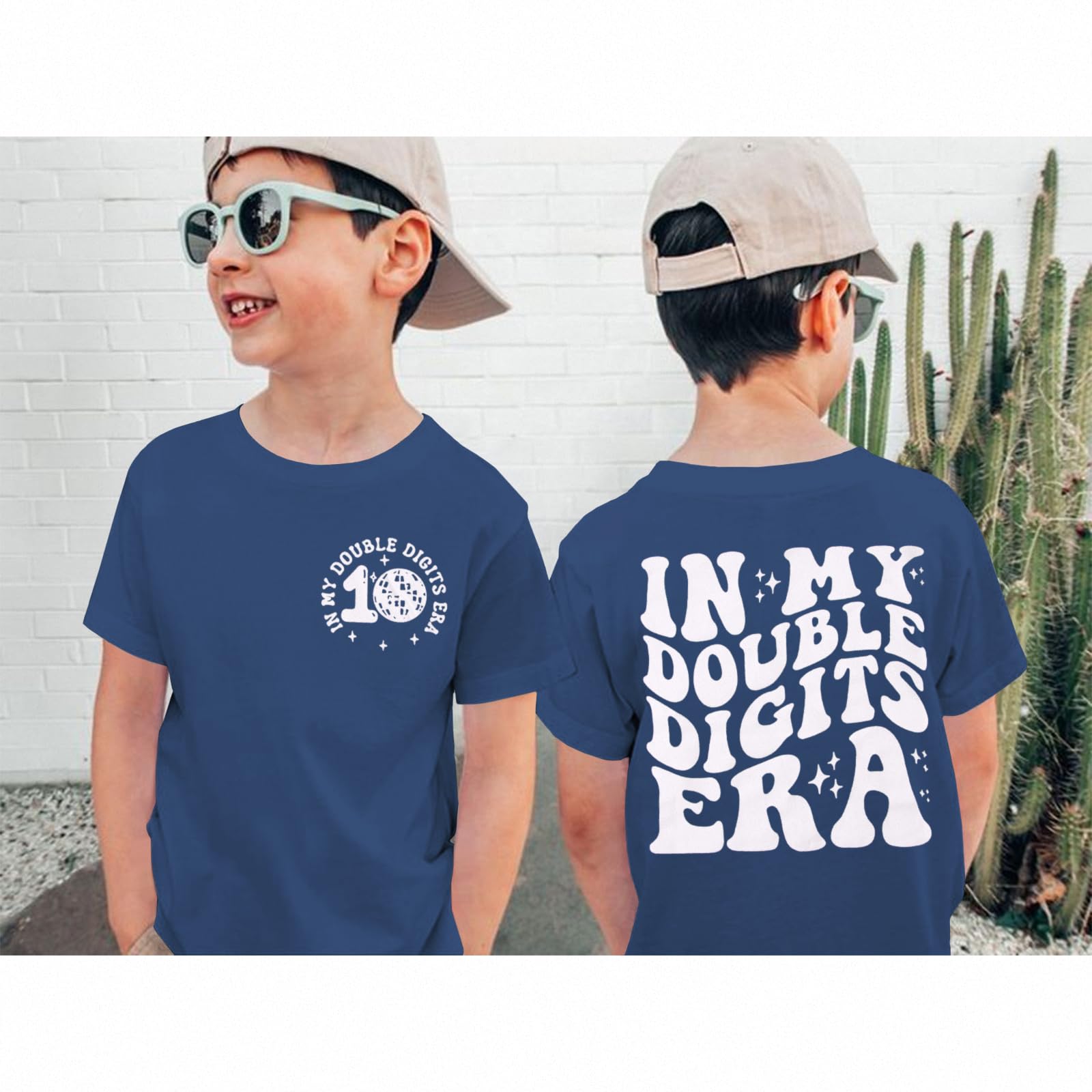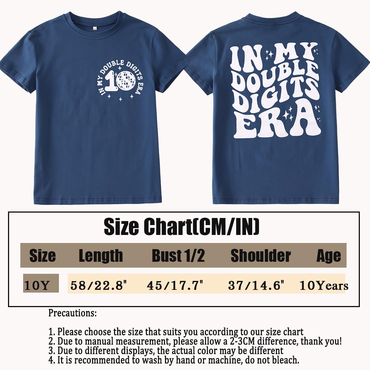 【Size】This funny In my double digits era tops for 10 year-old boy. Number 10 boys birthday shirt, 10th birthday t-shirt boys, in my double digits era short sleeve shirts. the perfect birthday gift shirt for your boys turning 10 birthday party.