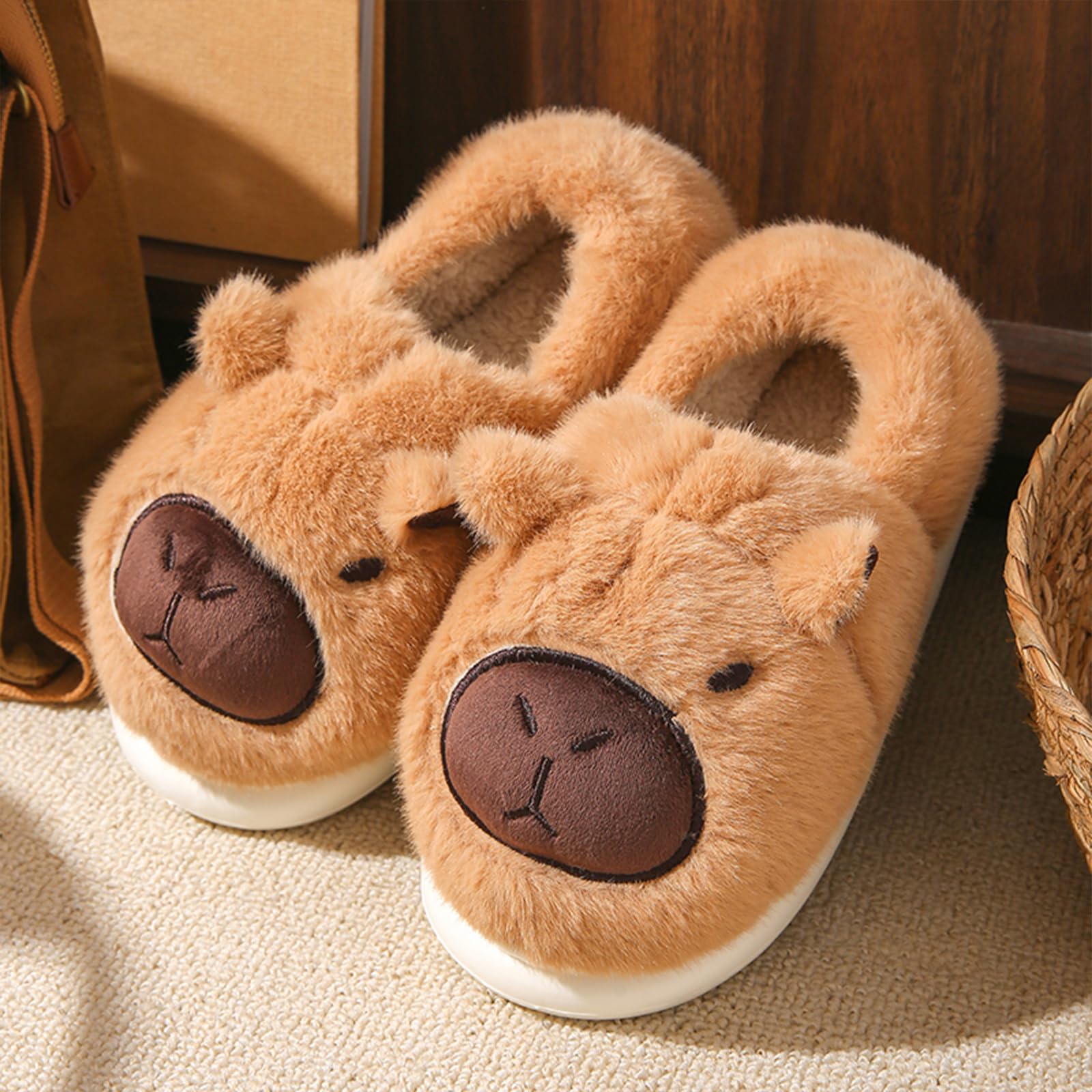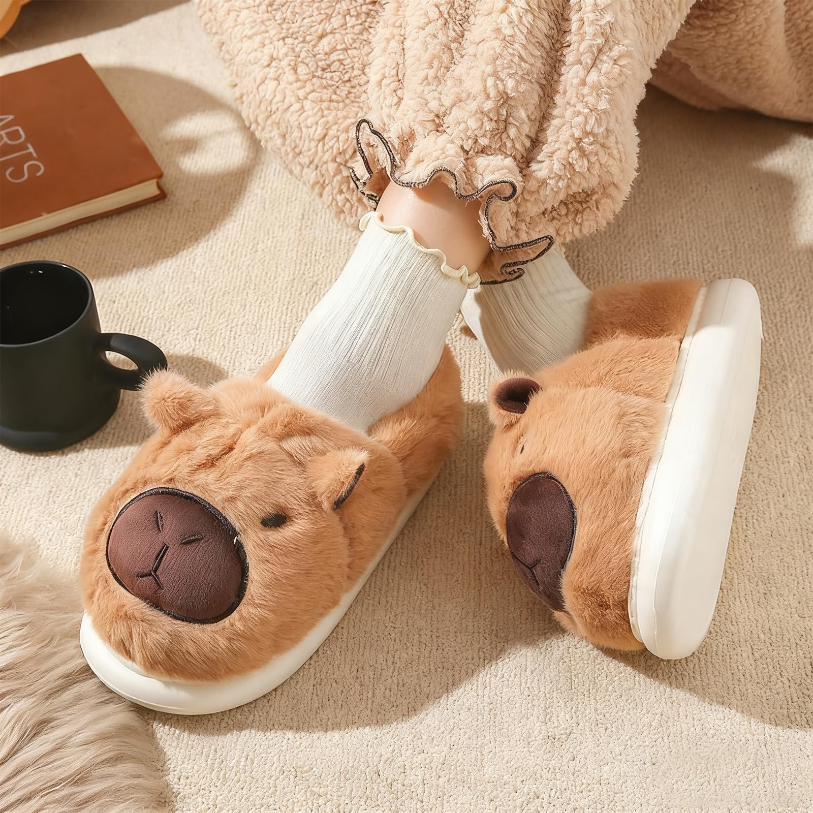 Package: Includes one pair of Capybara plush slippers, a set suitable for enjoying during Christmas, winters, or special occasions