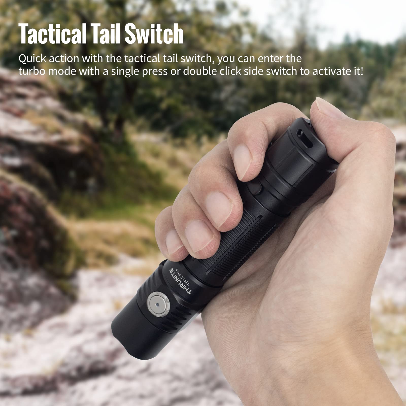 Dual Switch - Tailcap switch provides fast access to important outputs(TURBO MODE) for applications, or Triple click the side switch quickly to get strobe, good as a law enforcement feature. Use either the side switch or tail switch for activation.