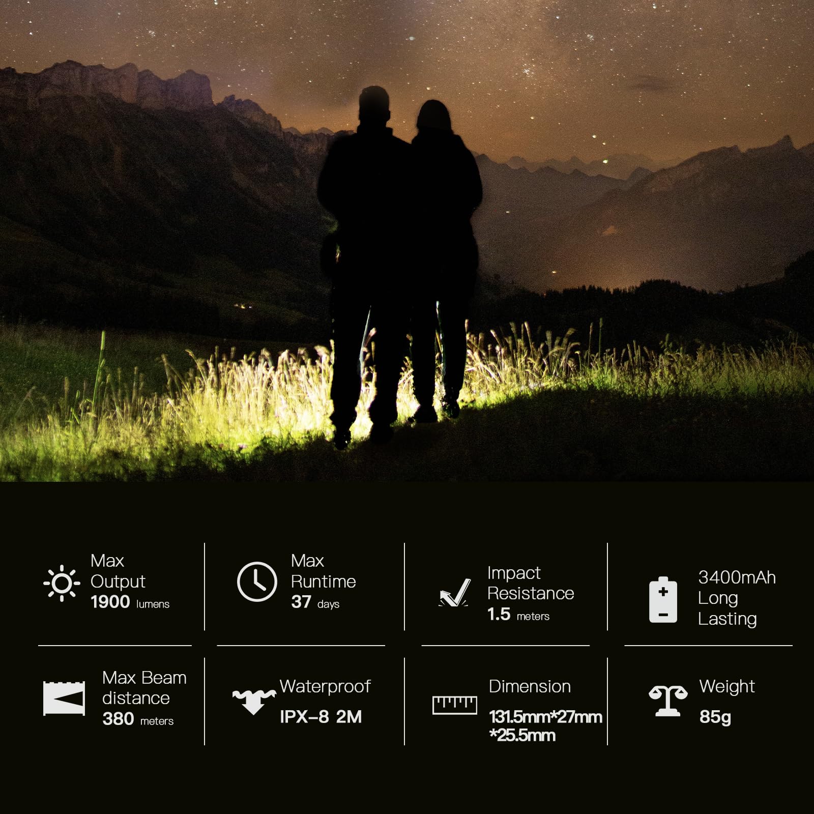 Six Brightness Mode for Multi Use - From 0.5 lumens in Moonlight mode to 1900 lumens in Turbo mode, it the first choice of your go-to everyday carry (EDC) light whether you're at work, on duty, or enjoying a weekend off, a versatile and powerful illumination tool for all applications.
