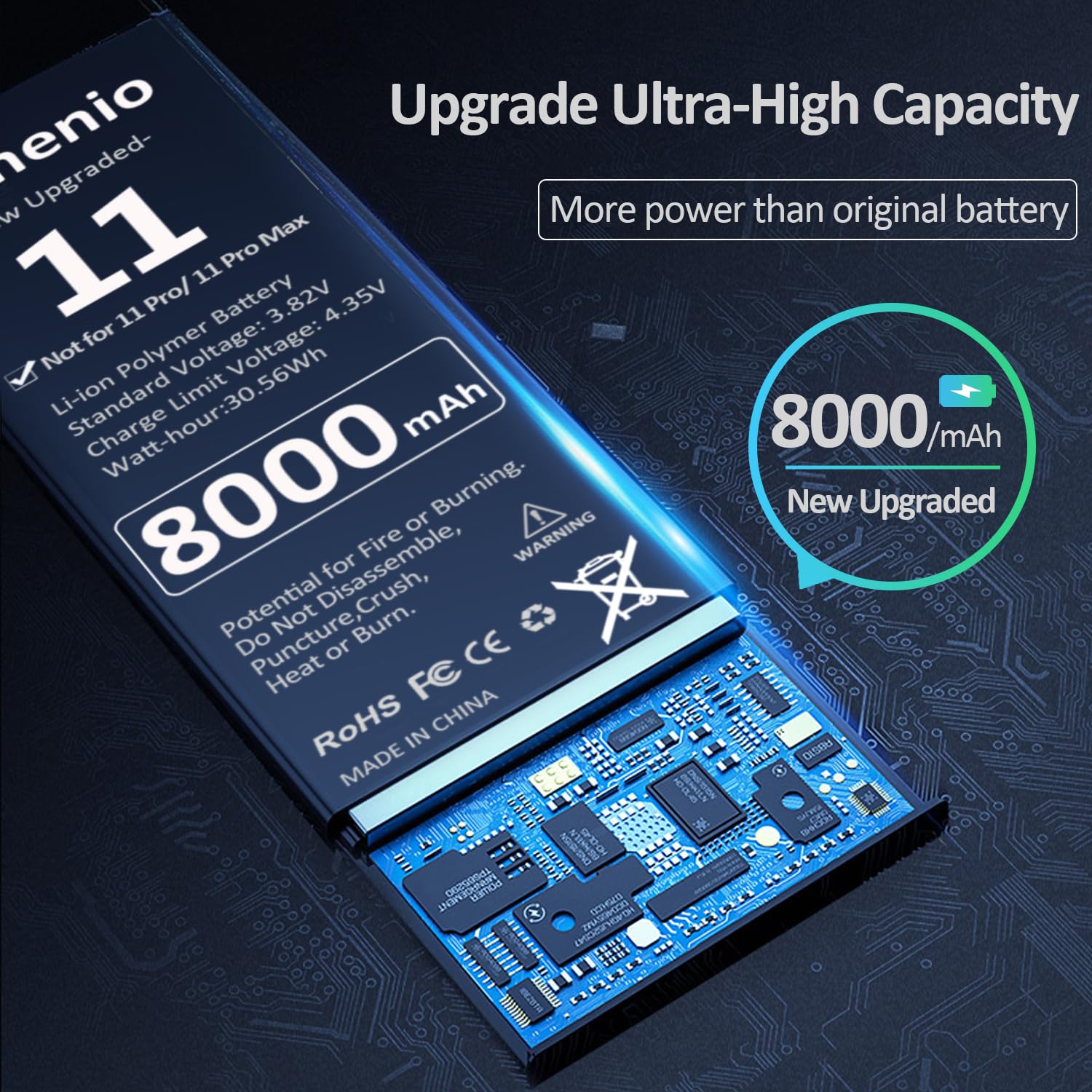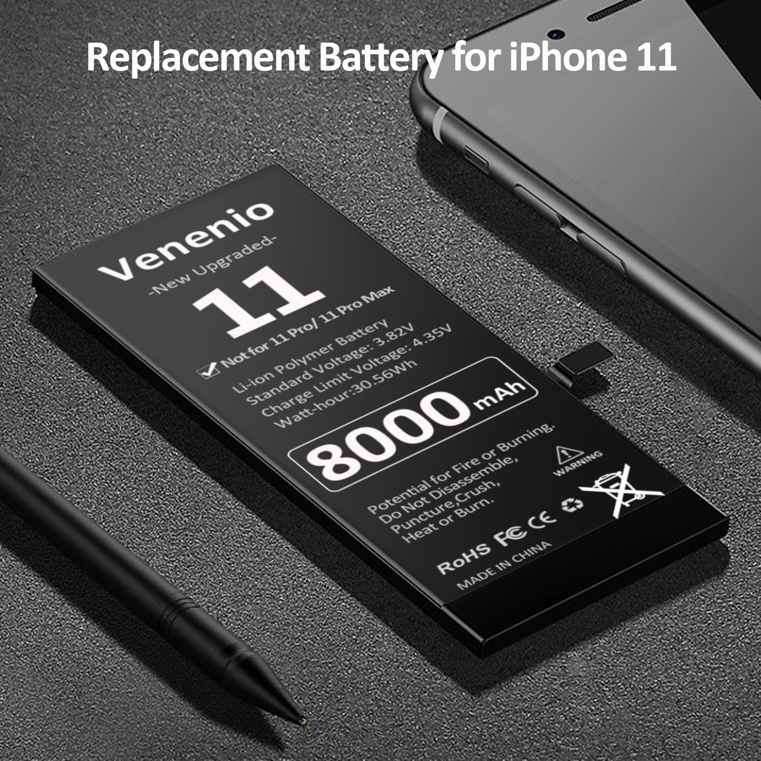 Venenio Battery for iPhone 11 (8000mAh), New Upgraded 0 Cycle High Capacity Battery Replacement for iPhone 11 Models A2111, A2221, A2223 with Complete Repair Tool Kits