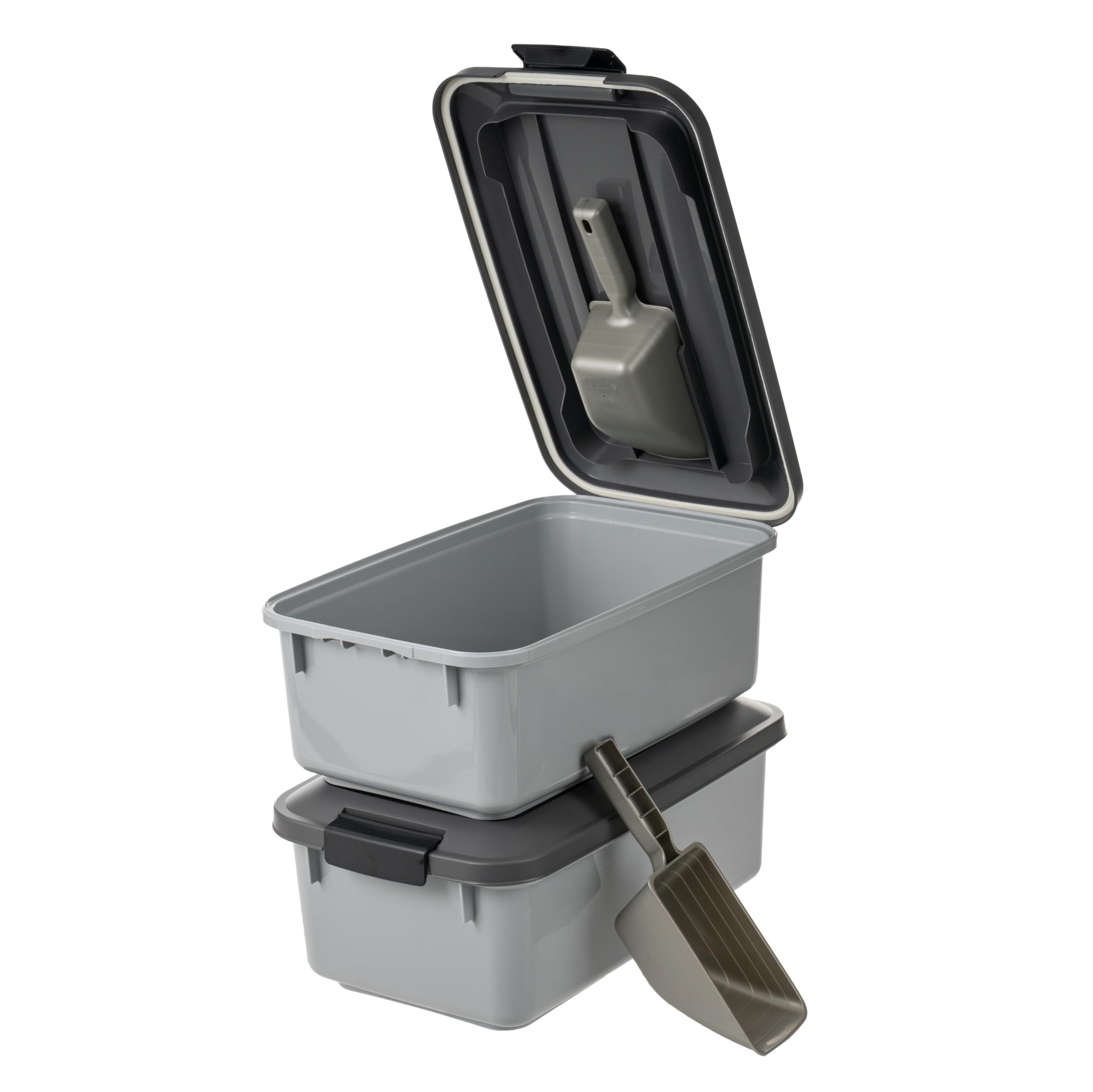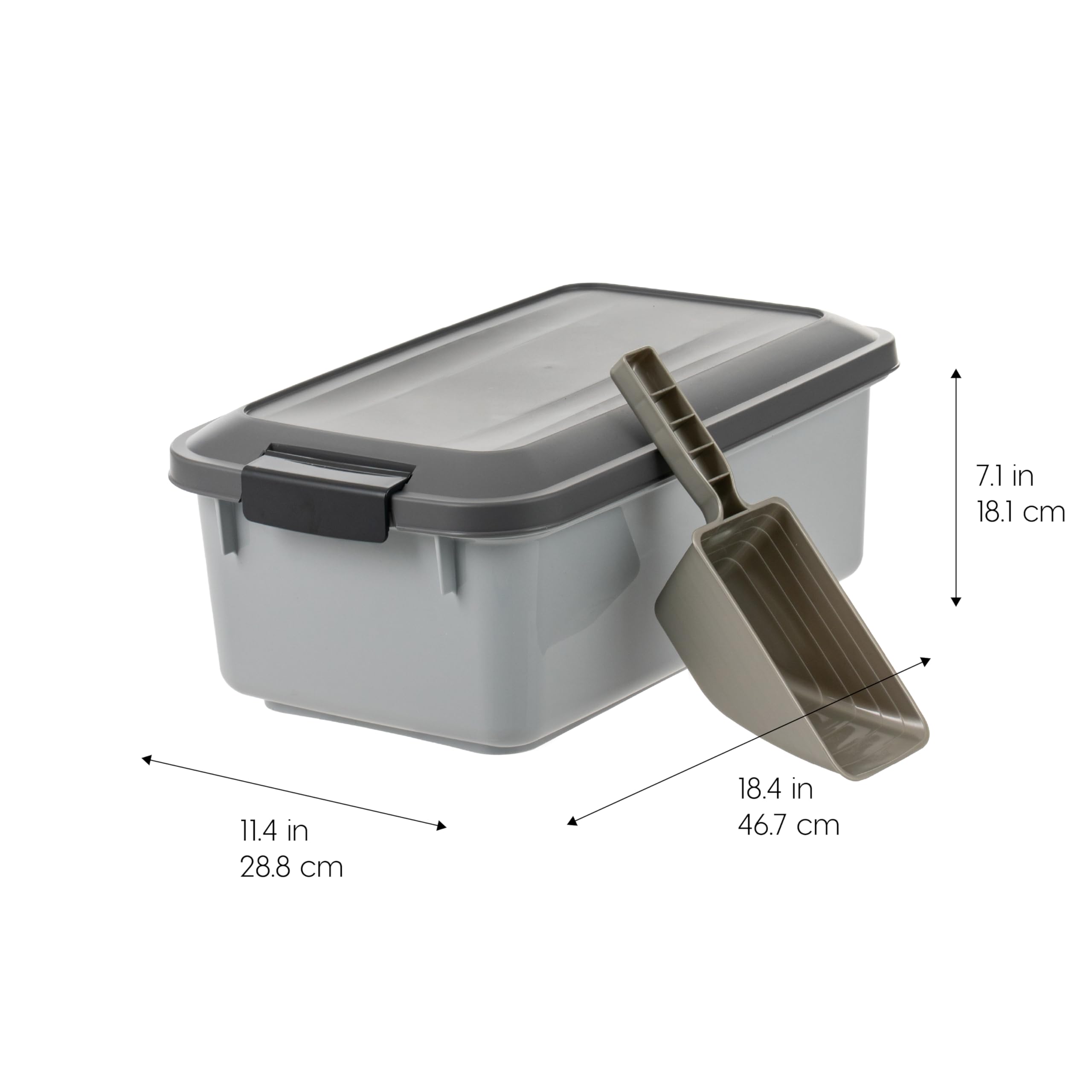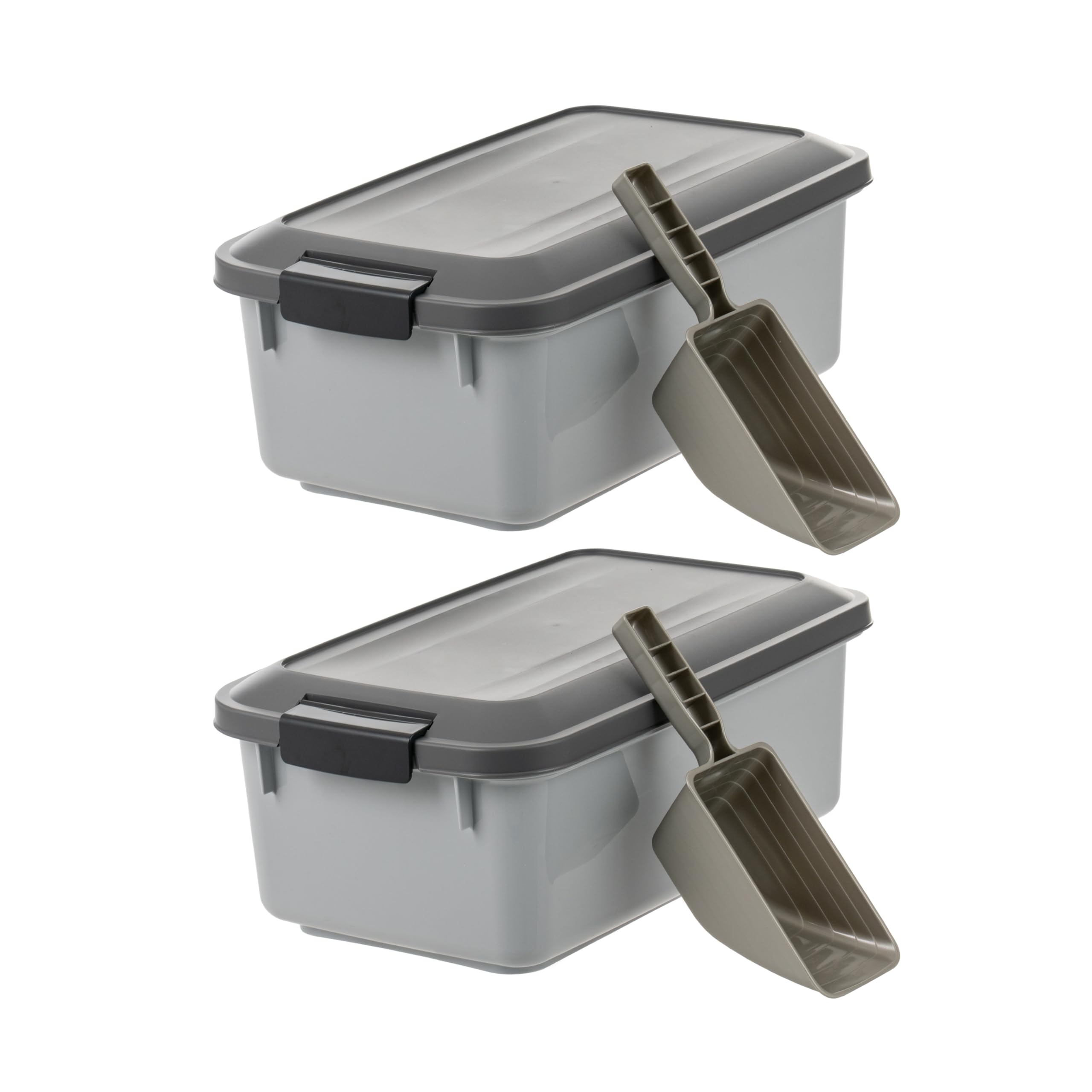 IRIS plastic airtight container is perfect for storing dog food, cat food, or any other dry pet food or treat you wish to store. The 14 Pound sealed storage container features a foam seal and snap lock latches to keep pet food fresh and keep moisture out. Designed as pet food bins, these BPA free airtight storage bins offer many other uses as well, such as leash and toy storage, pellet storage, grain storage, birdseed storage, cat litter storage, or even as a charcoal container. This IRIS airtight pet food container is translucent, versatile, functional, and can be used and stored in any area of the house. 2 Pack.