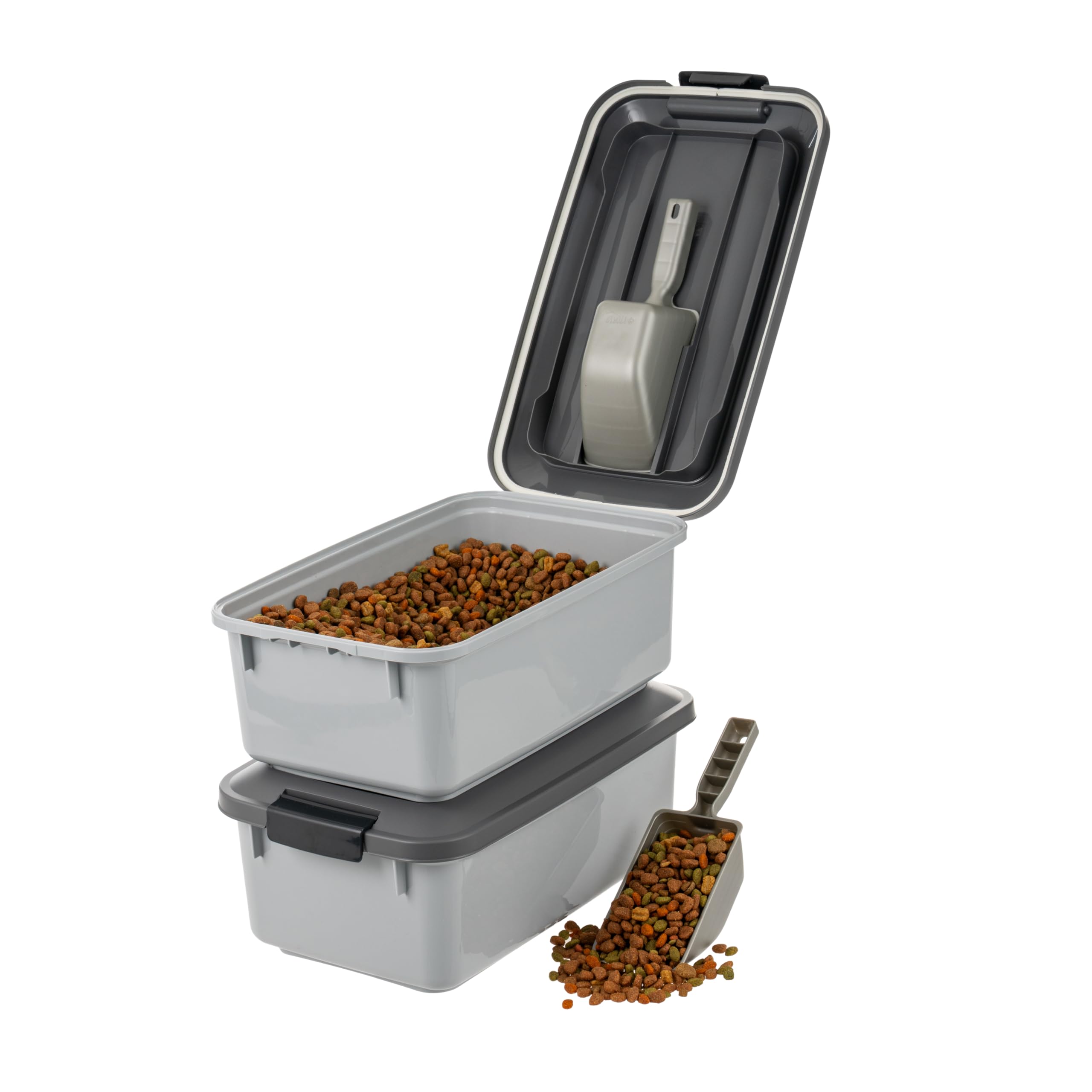 STACK AND STORE: The low profile pet food container is perfect for the cabinet or on a shelf. Stack two to save space and maximize your use of vertical space.