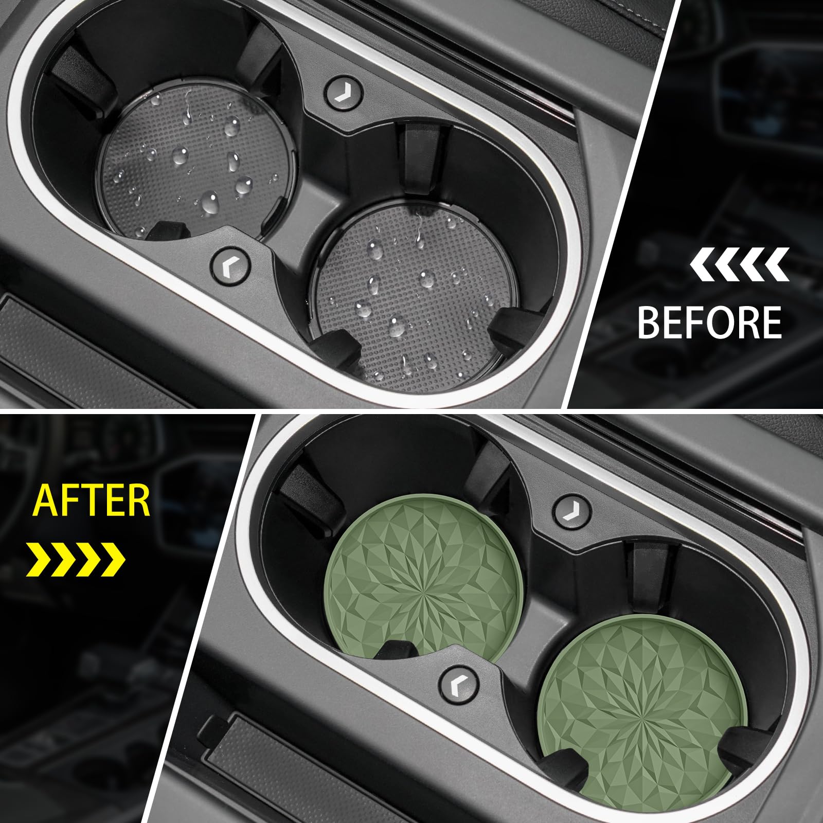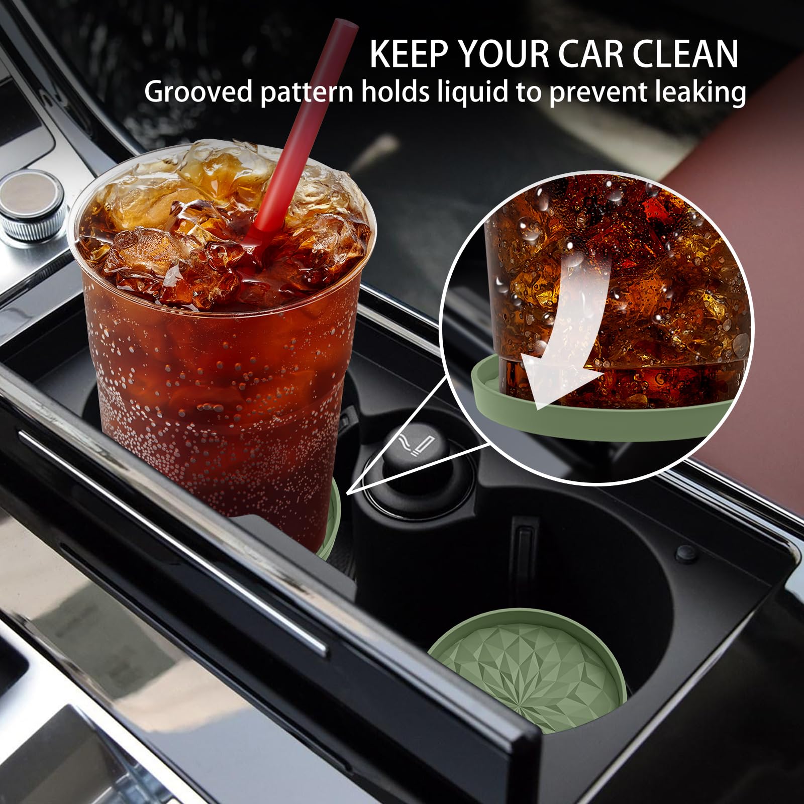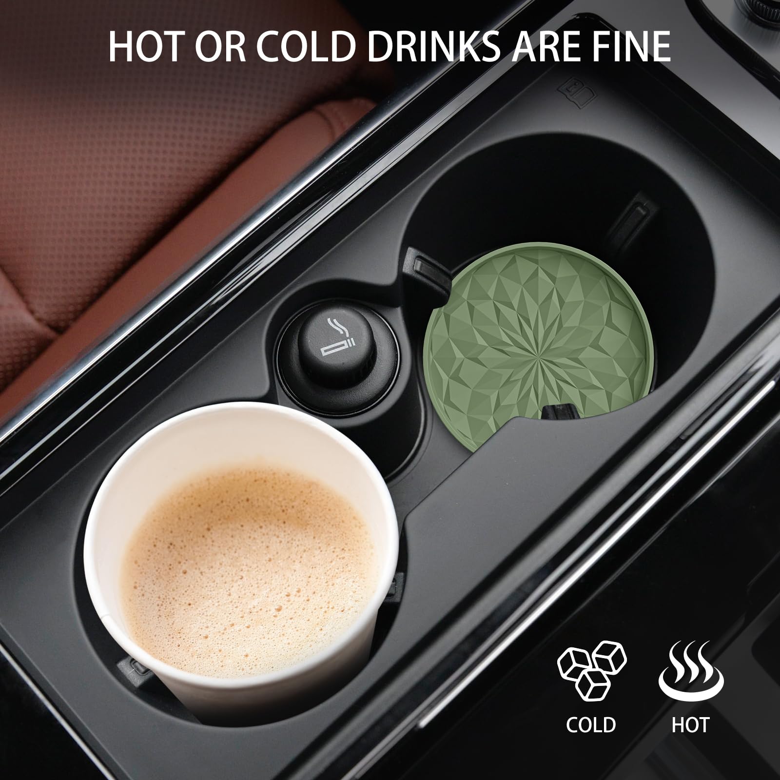LONG-TERM USE & HEAT RESISTANT & DISHWASHER AVAILABLE: The car coasters are made of food grade silicone, soft & flexible. Heat resistant range from -40F to 480F, can be used for cold or hot drinks in car. If it gets dirty, just throw it in the dishwasher.