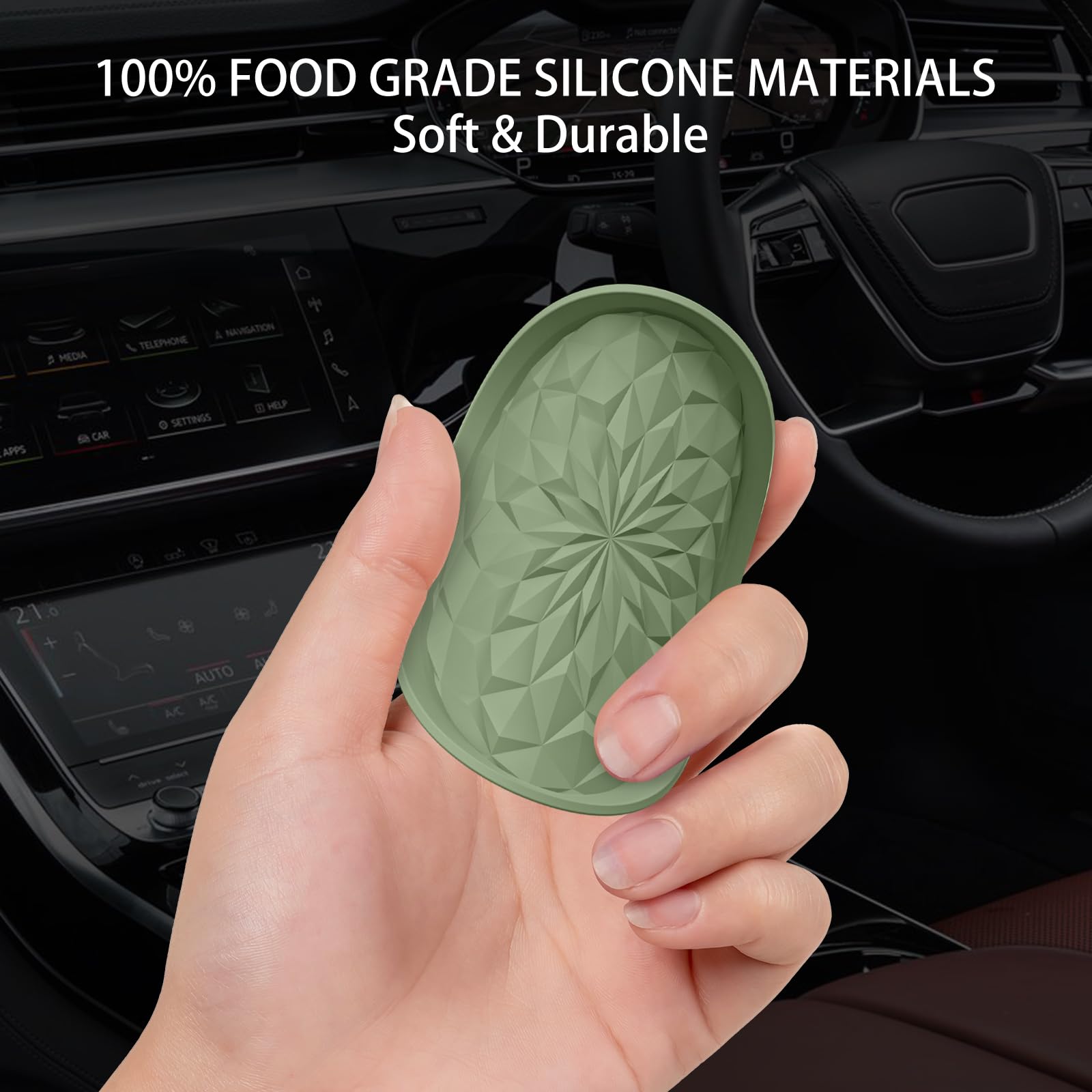 HEW STYLE DESIGN: The design of this coaster is inspired by diamonds, symbolizing eternity like diamonds. You will get 4 set silicone car coasters, the quantity can meet your daily use and replacement needs.