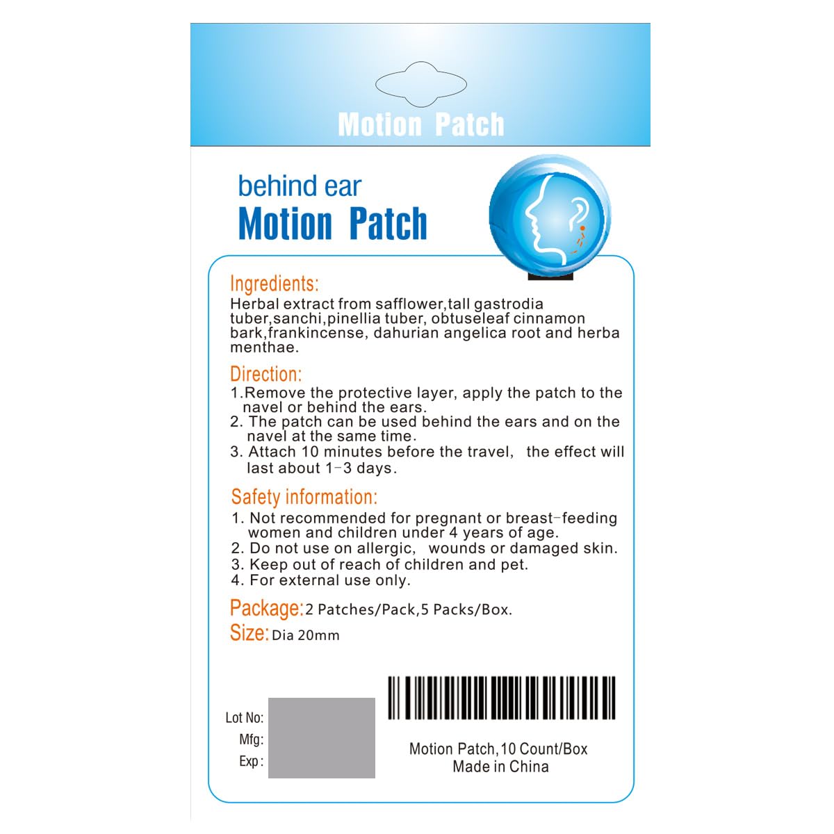 SIMPLE TO USE - The motion patch can be used behind the ear or on the navel