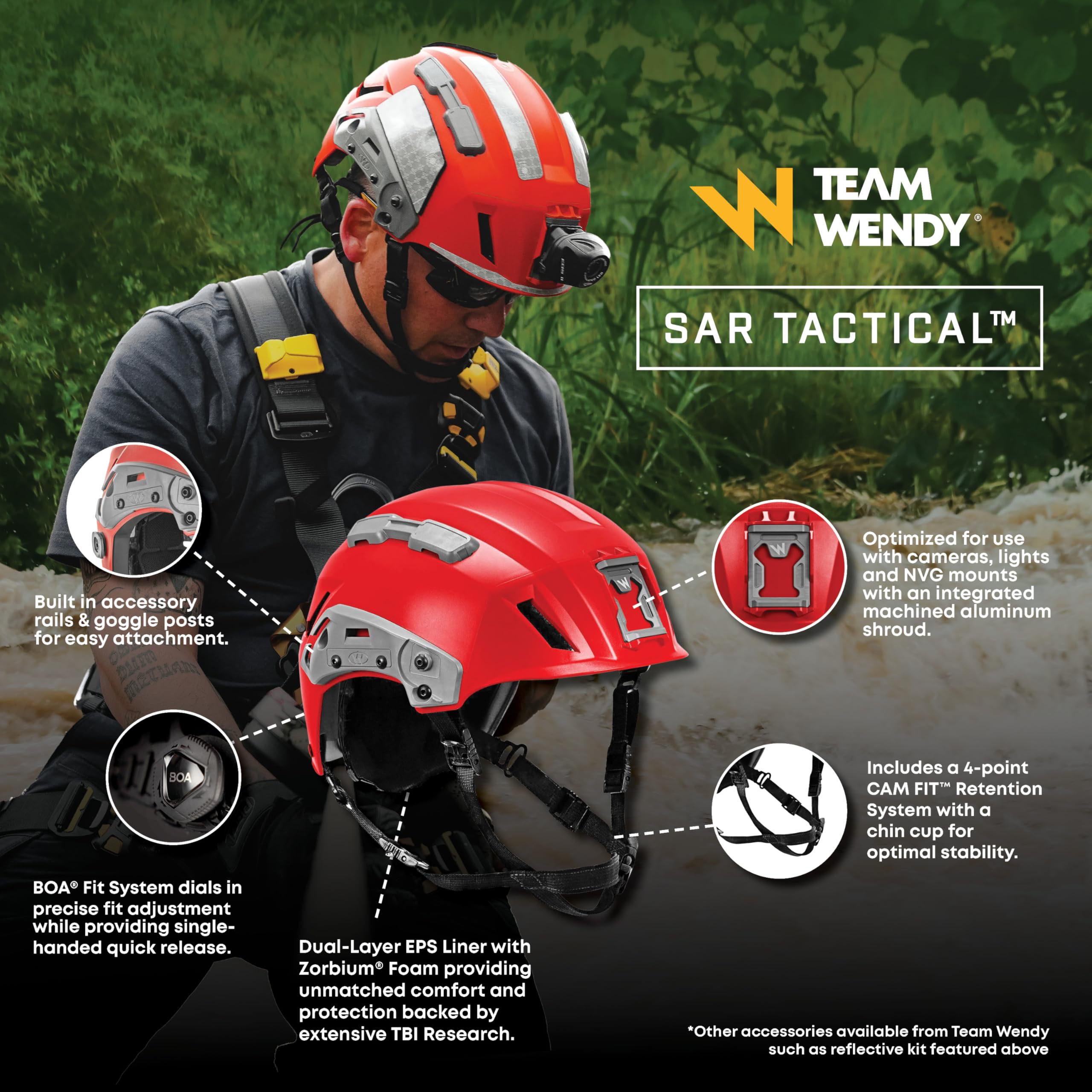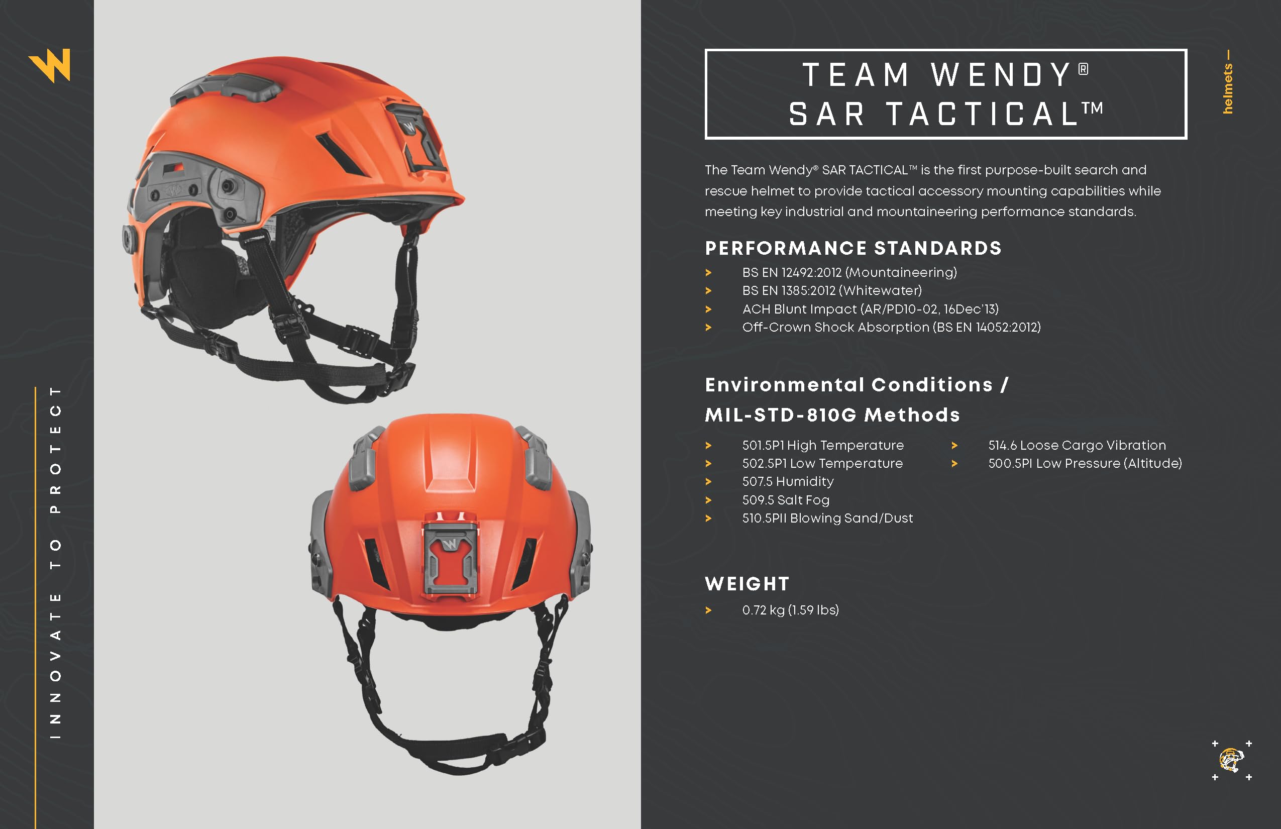 Search & Rescue Ready: First helmet purpose-built for search and rescue with accessory mounting capabilities while meeting key industrial and mountaineering standards.