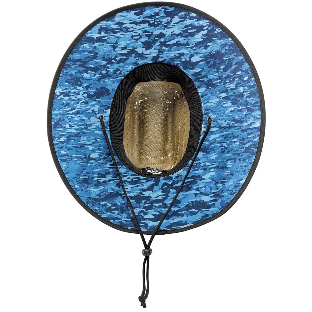 PATTERN. Features an eye-catching, blue water camo underbrim design, blending aesthetic appeal with practicality for enthusiasts in aquatic environments.
