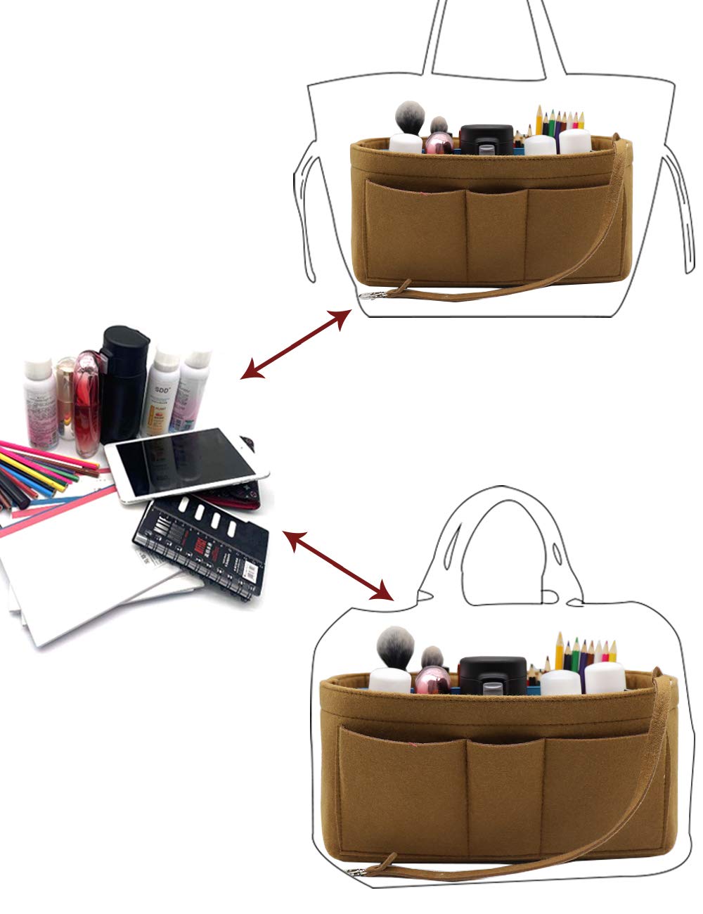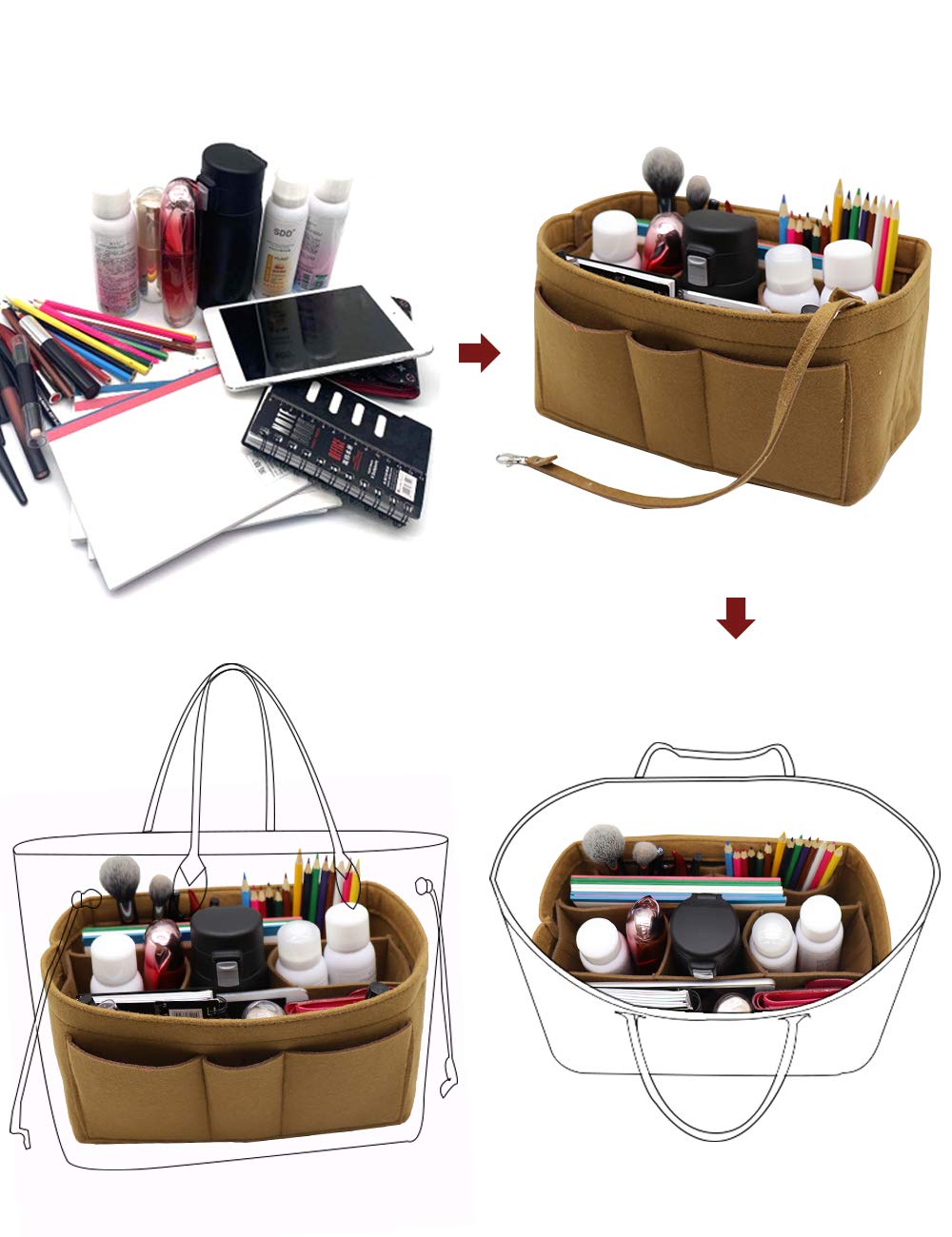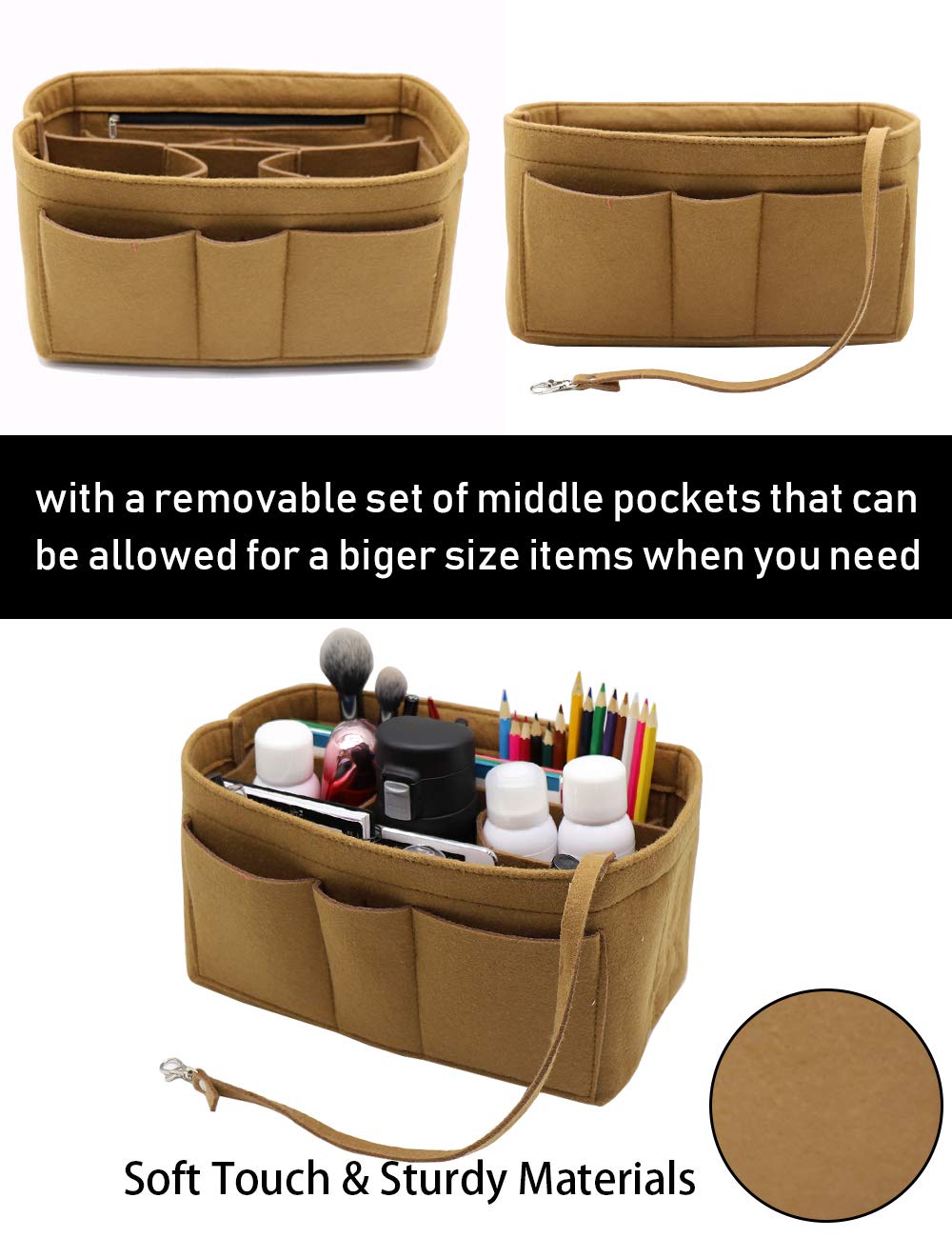 LIGHTWEIGHT & DURABLE---Strudy but Very Lightweight,Structured organizer bag in bag, Thick felt fabric better protect your items inside handbag.Fits for a variety of models handbags,Keep your Handbag shape and shipshape.