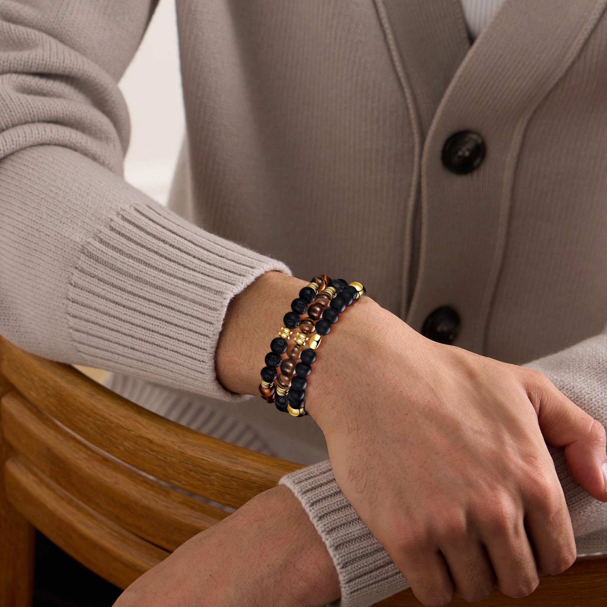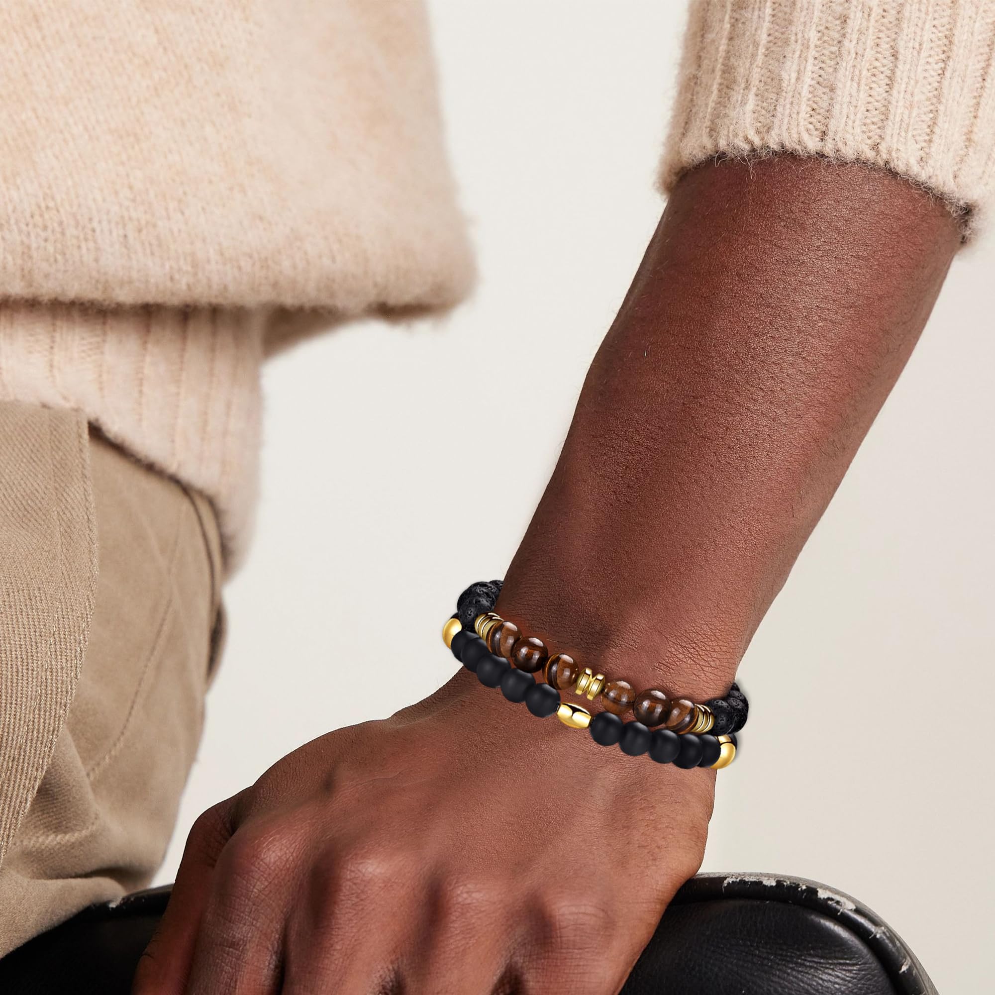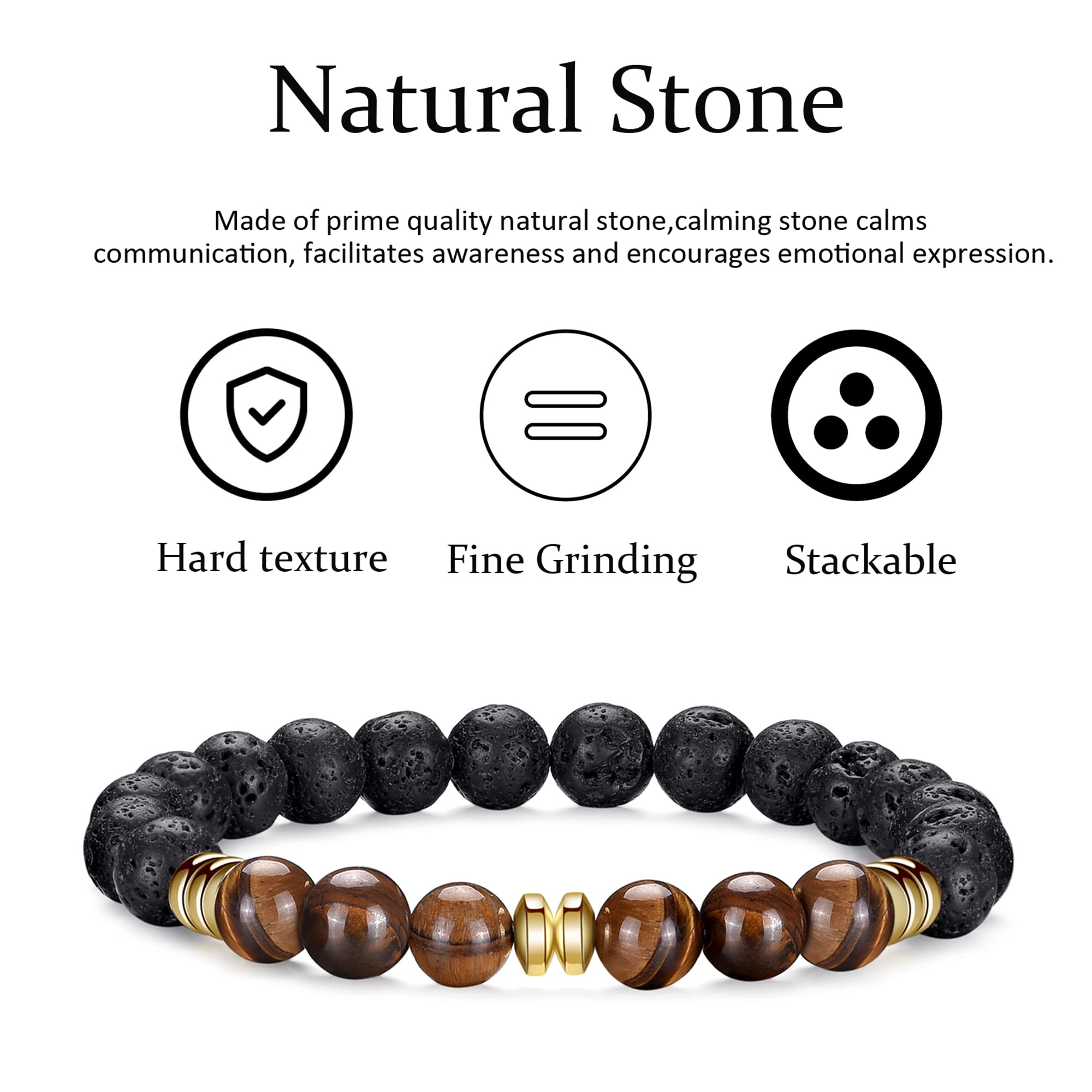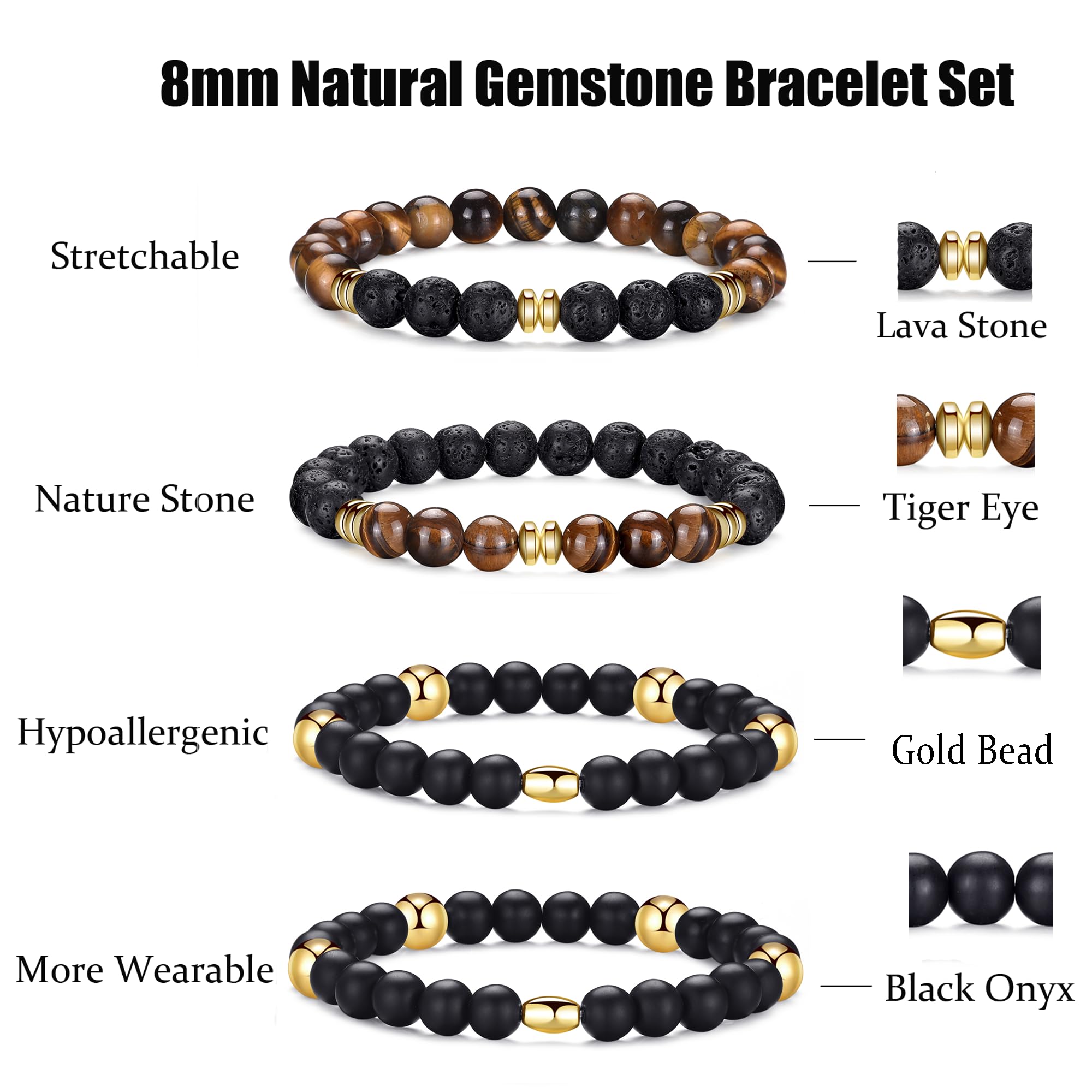 Mens Bracelets Size:The tiger eye stone and black matte agate stone bracelet can Stretch,Bead size:8mm,Adjustable Range: 7.3''-10.4''. Perfect sizes as gemstone bracelet for both men and women UNISEX. Natural tiger eye mens bracelet is a perfect bracelet jewelry accessory for any occasion to change your style and mood.