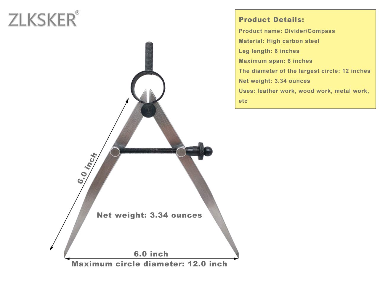Leg length is 6.0inches, the maximum span is 6.0inches, and it can draw a circle up to 12inches