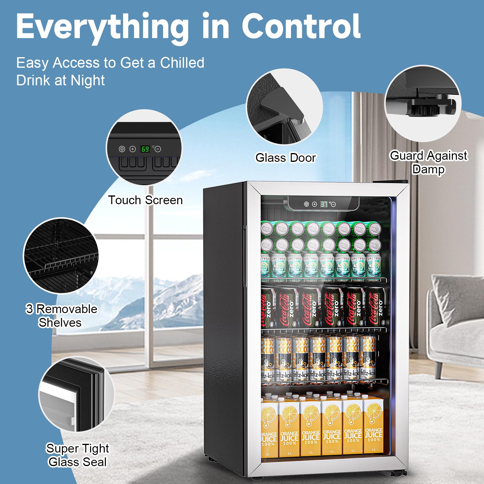 Super Large Storage Capacity: Featuring an internal space of 3.1 cubic feet, it can hold up to 110 cans of beverages. Matched with removable shelves, it flexibly fits different-sized drinks like canned and bottled ones.