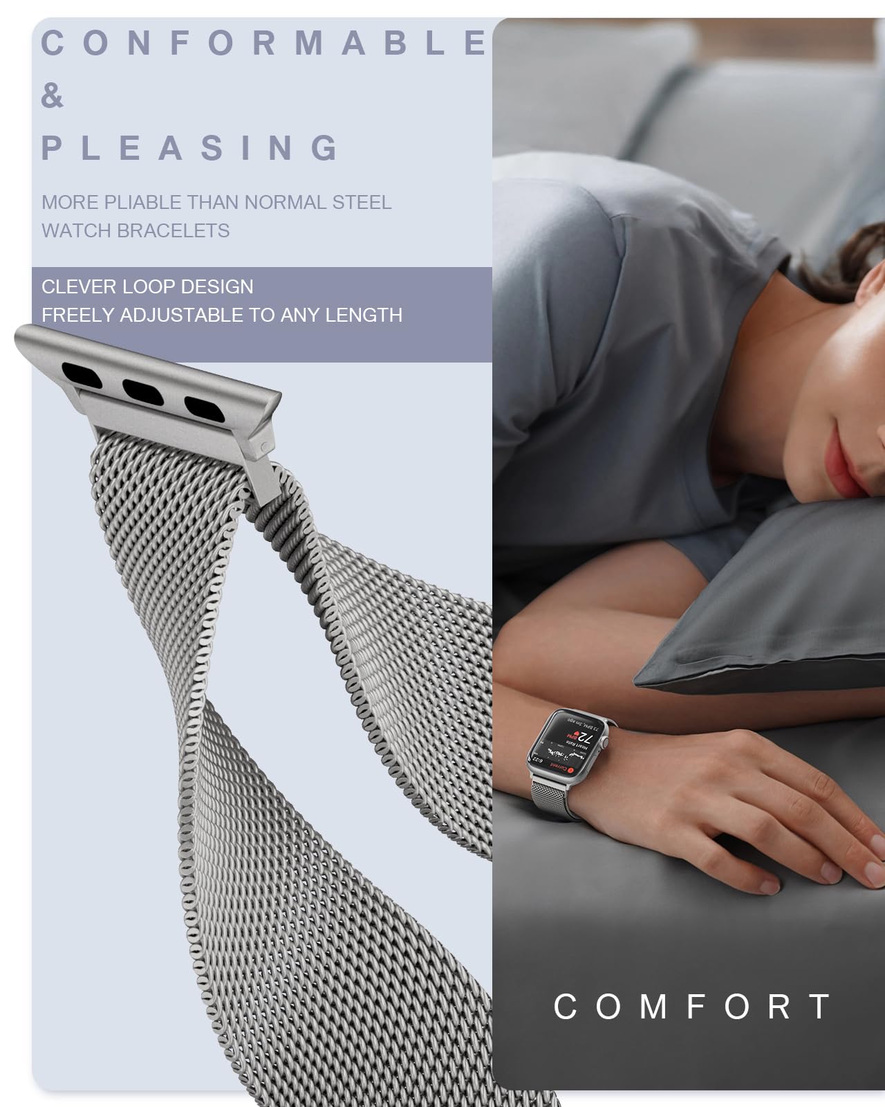【2025 Newest Original Design ------ IF Official Award Design】: BRG iwatch magnet band is crafted from stainless steel alloy with magnetic closures, polished edge, metal wristband has no corrosion, rust. Magnetic connector and mesh loop design makes your strap more flexible to adjust the length
