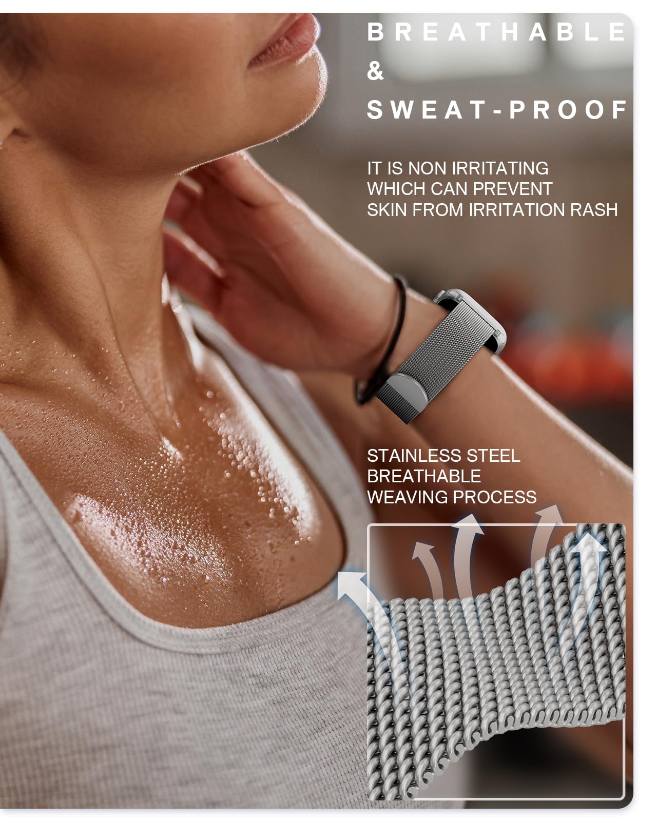 【Breathable & Sweat-proof】: BRG stainless steel bands compatible with apple watch adopts stainless steel breathable weaving process, It is non irritating, which can prevent skin from irritation rash, the stylish stainless steel mesh buckle band is suitable for any occasion, anti-slip & sweat-proof.