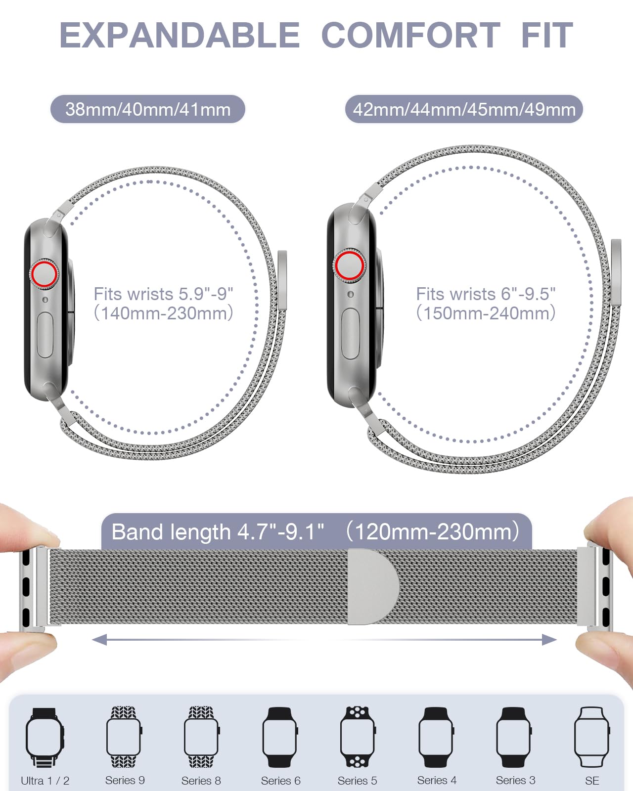 【Wide-Compatible with Apple Watch / iWatch 】: BRG stainless steel mesh loop for iWatch band Fully compatible with Apple Watch 44mm 45mm 49mm 46mm Series 11, Series 10, Series 9, Series 8, Series 7, Series 6, Series 5, Series 4, Series 3, Series 2, Series 1, SE 3 2 1, Ultra 3 2, Ultra . Perfect replacement for all styles iWatch wristband.Suitable for both men and women