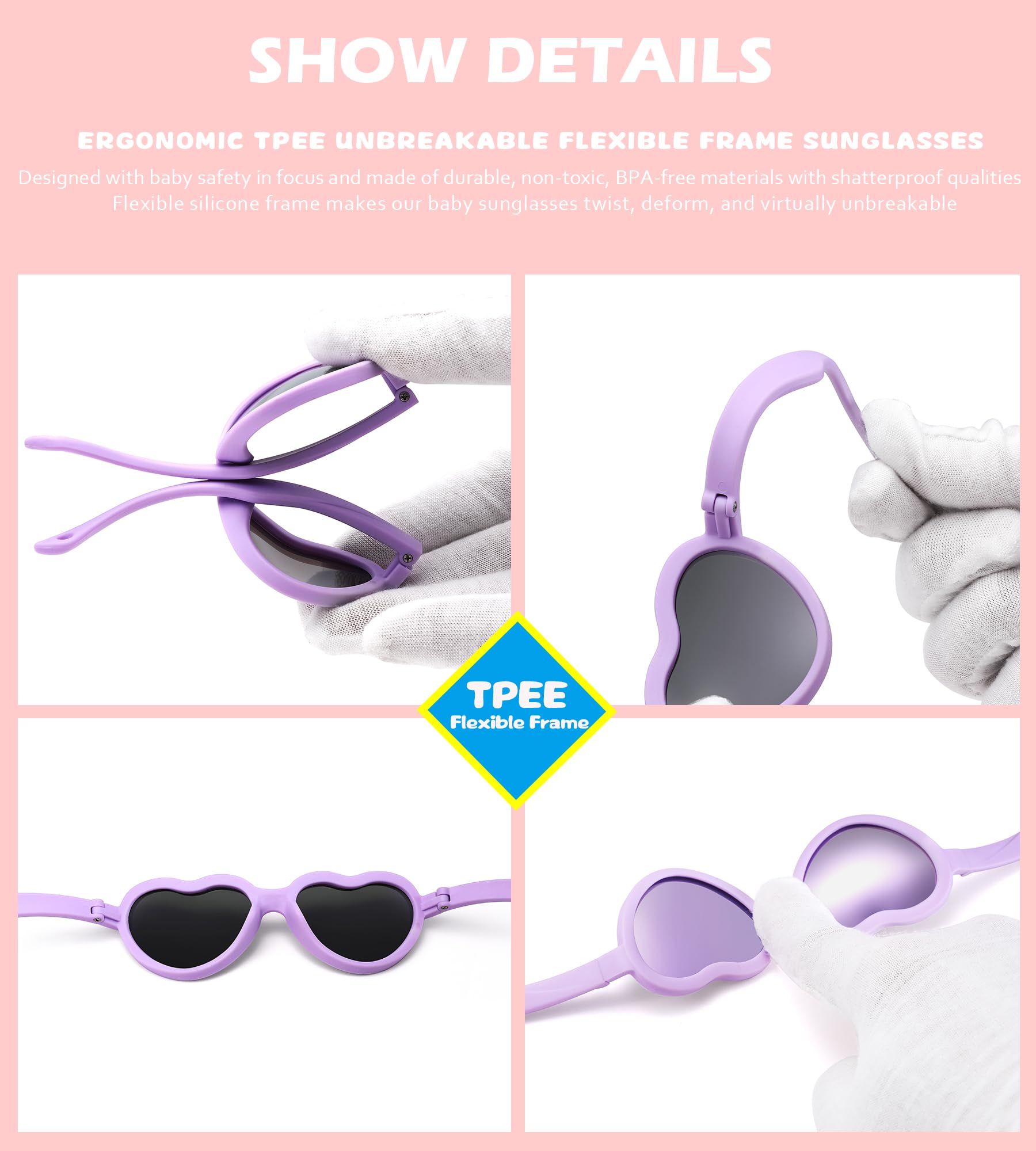 Strap Adjustable - Conveniently attached strap adjusts to the baby's head size and securely holds the sunglasses in place, providing an excellent fit