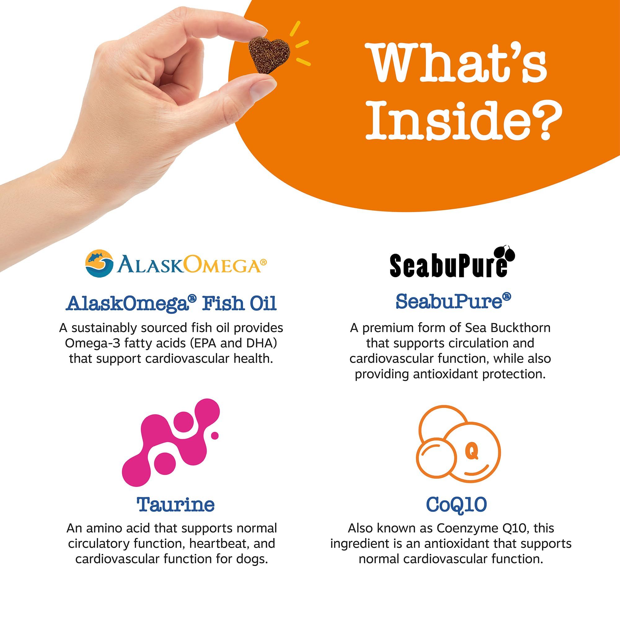 Beneficial Ingredients in Every Bite - Includes Pumpkin Seed Powder, CoQ10, Hawthorne Powder, L-Arginine, Folic Acid, and Vitamin E for additional heart, immune, and antioxidant support for pets.