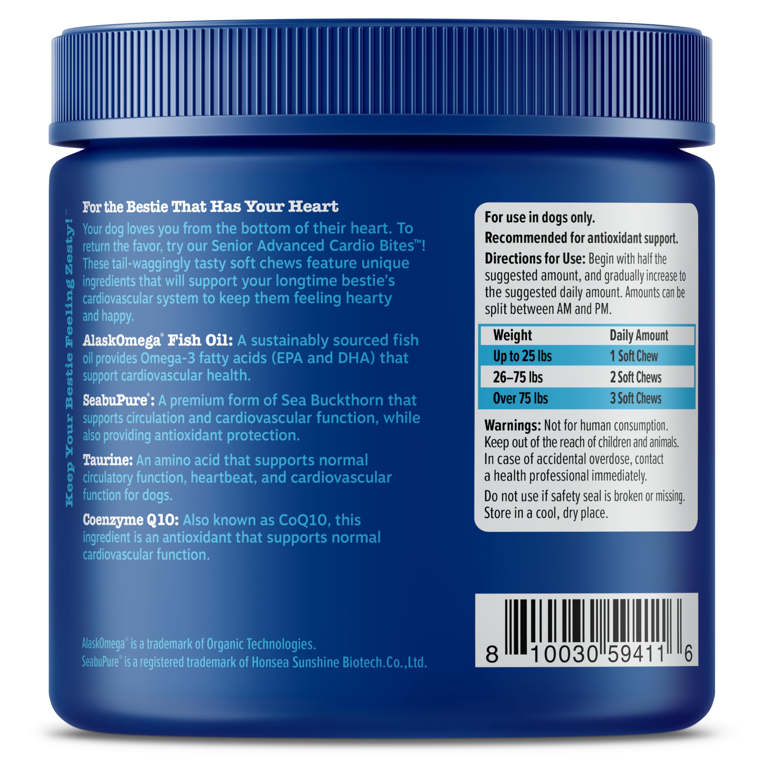 For the Bestie That Has Your Heart! - Zesty Paws Senior Advanced Cardio Bites are soft chews uniquely made with beneficial ingredients that support cardiovascular function for senior dogs.