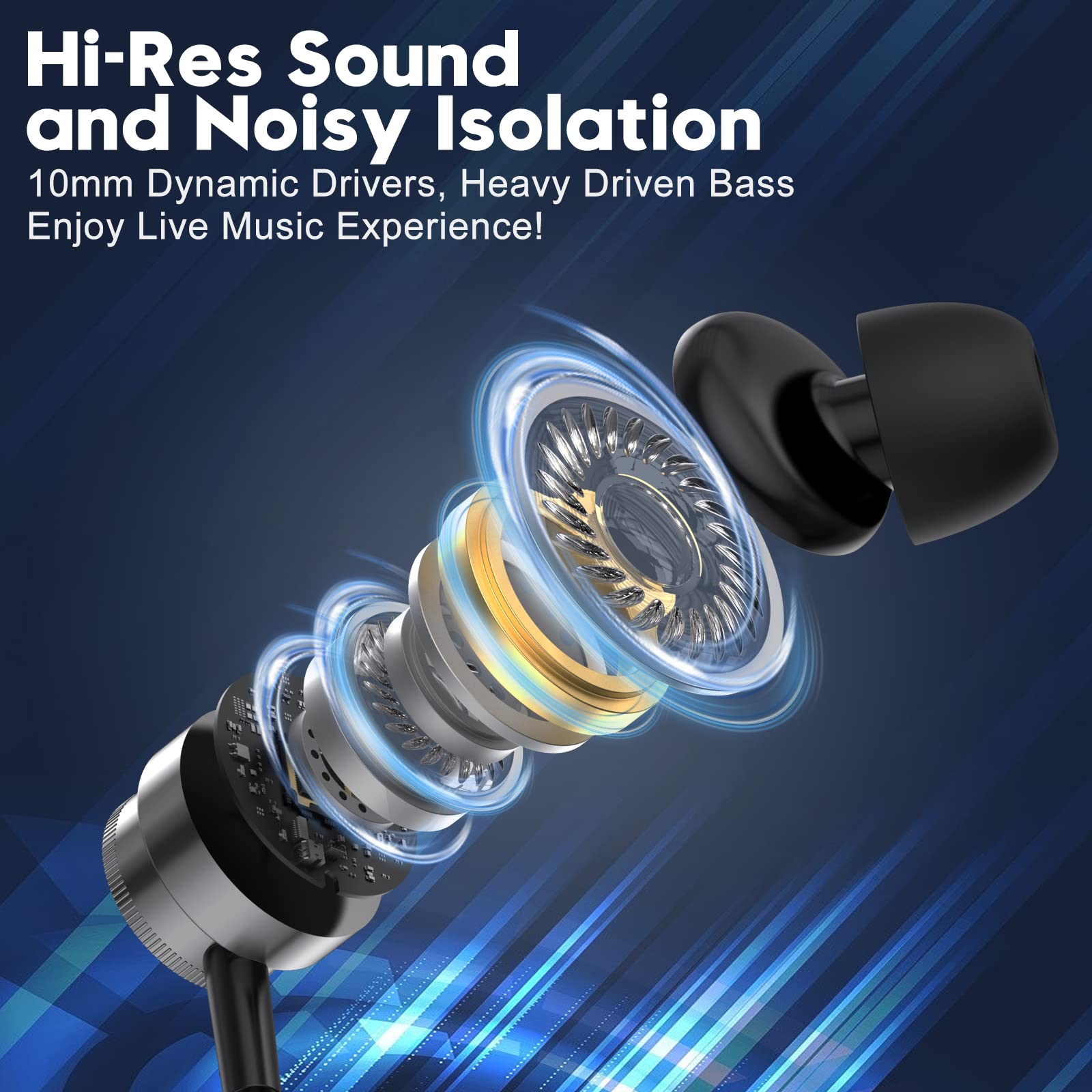 【Professional Sound Quality】wired headphones design with powerful 10mm Neodymium earbud magnet provides bass driven audio and clarity for all music genres,with the in ear noise isolating earphone design, these wired headphones reduces external noise and minimizes sound leakages significantly.
