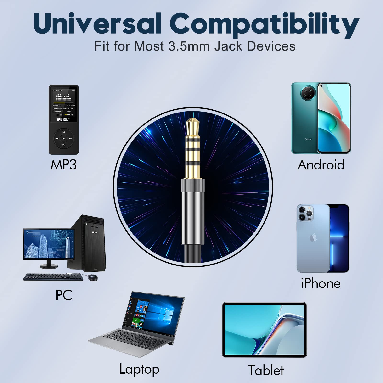 【Multifunction Button】The corded headphones with HD microphone and controller allows you to answer/end calls, play/pause, play next/previous music with the headset, you don't have to touch your device to complete a variety of essential functions.