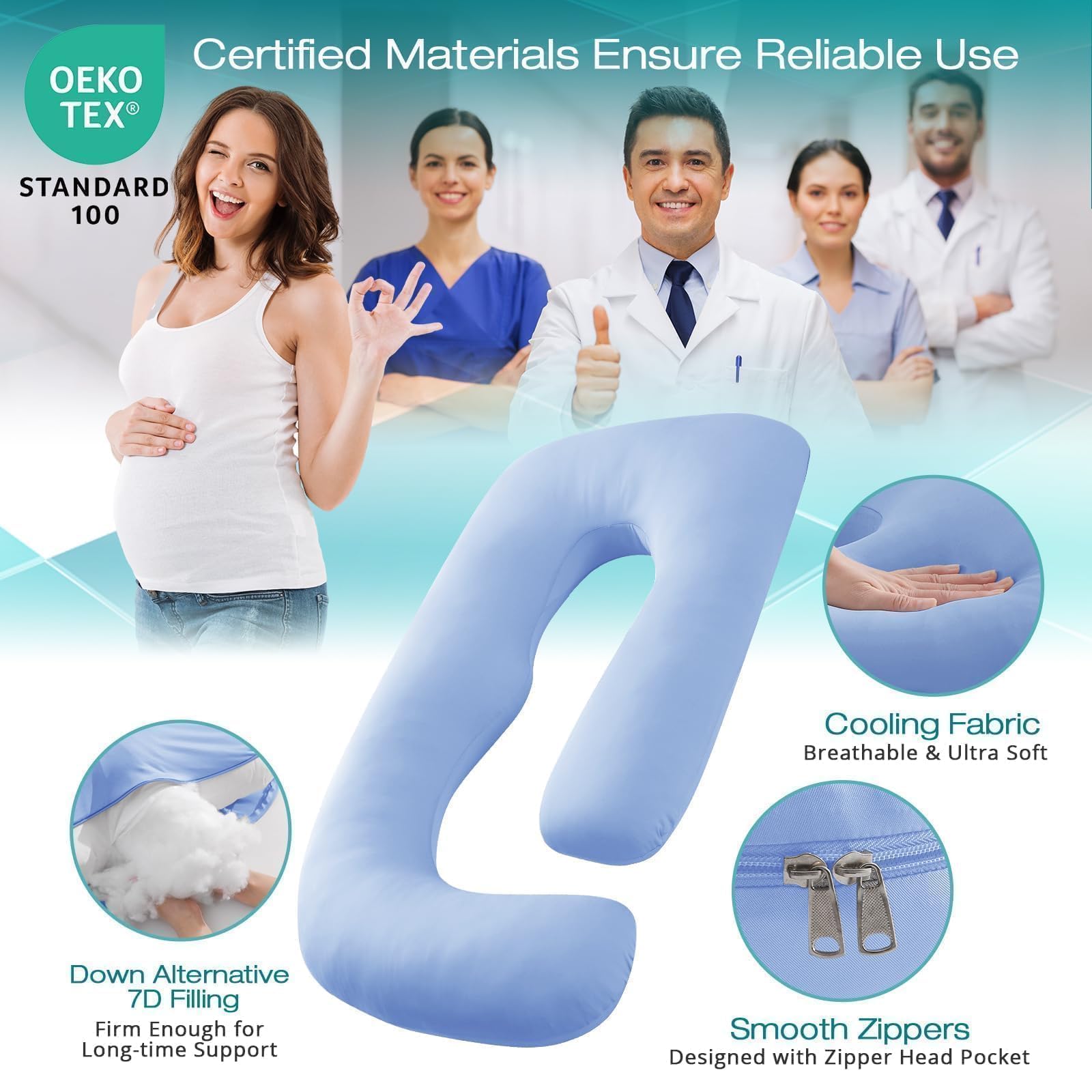 Premium Down Alternative Filling: Our U-shaped full body pillow is filled with 7lbs down-alternative filling. Blended with 40% silicified fiber and 60% polyester fibers, our pregnancy pillow strikes a good balance between support and comfort