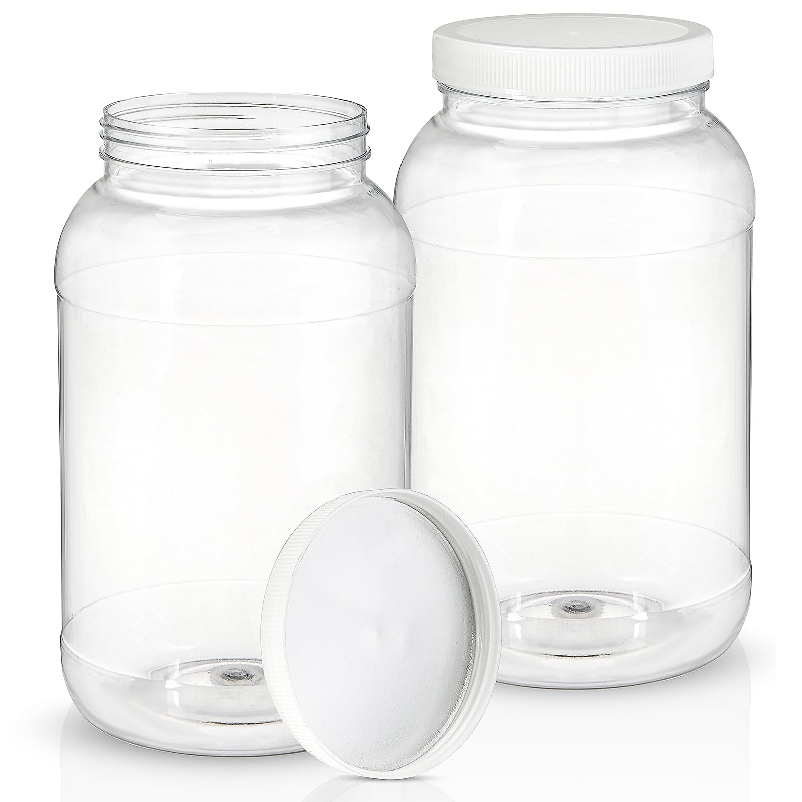 The 1/2 Gallon 64 oz PET Jar shares the same classic look as glass jar. The large, round body gives you plenty of space for a creative label and to showcase your product.