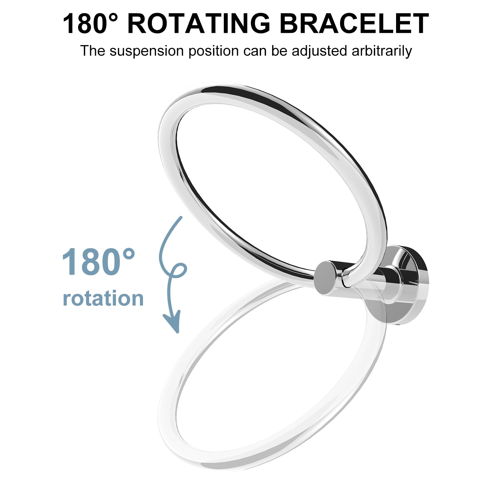 DECORATING YOUR BATHROOM: Featuring a clean line and smooth mirror silver finish, the round hanger adds an elegant, stylish touch to your bathroom.