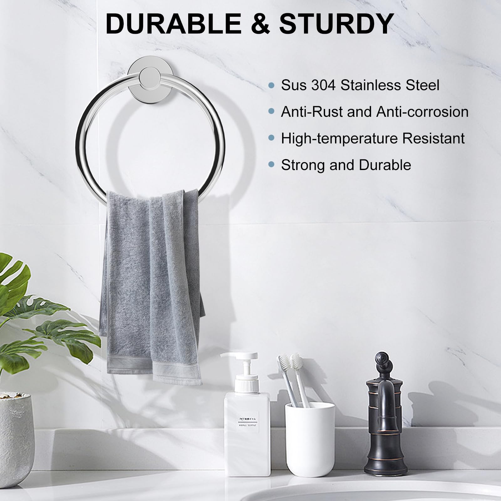 DURABLE & STURDY: Made of high quality stainless steel, this towel ring is with excellent strength and durability, resisting the corrosion and rust.
