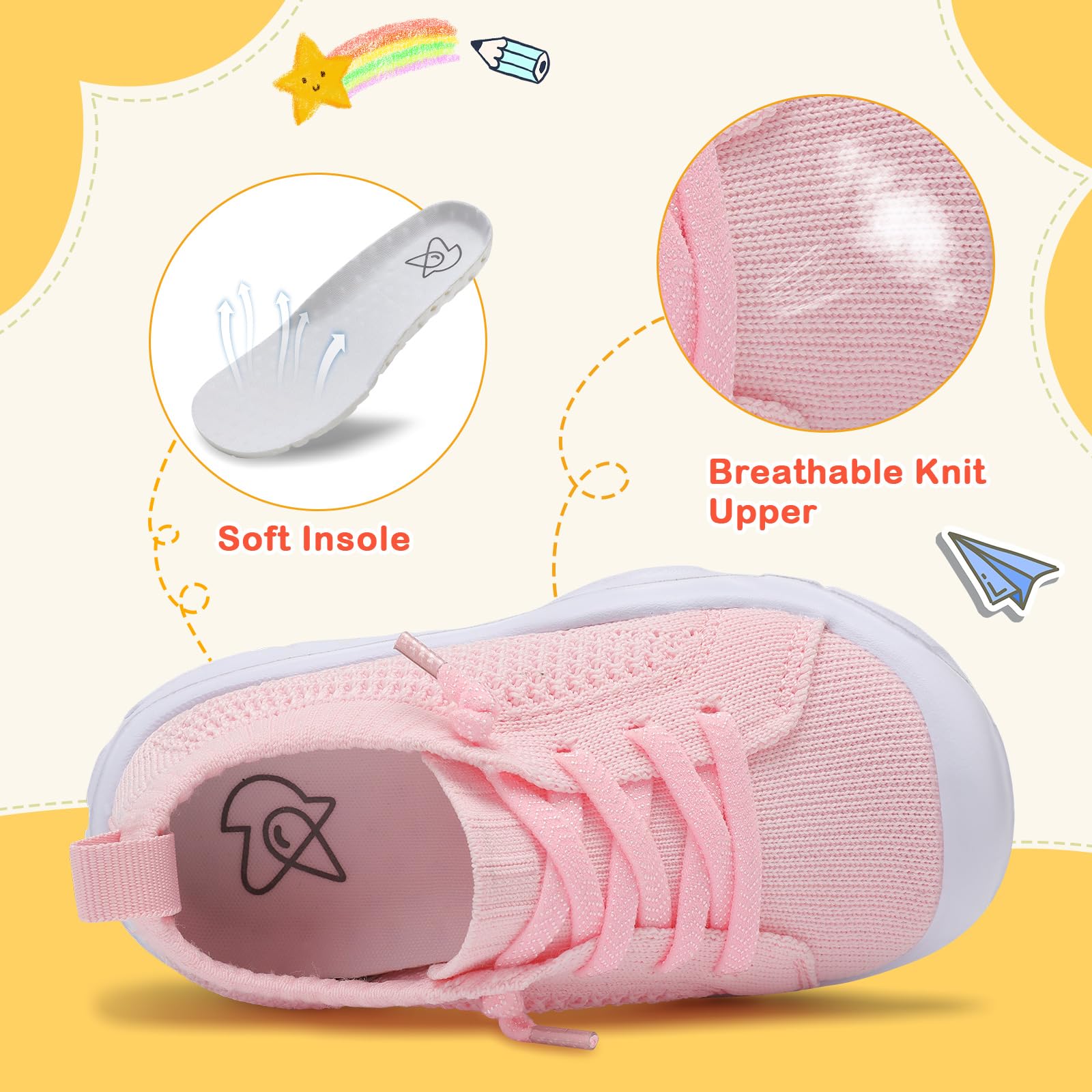 Breathable and Comfortable: The knit uppers of these toddler shoes give you good breathability and dry quickly. Keep kid's feet dry and comfortable even during exercise. Suitable for wear in any season