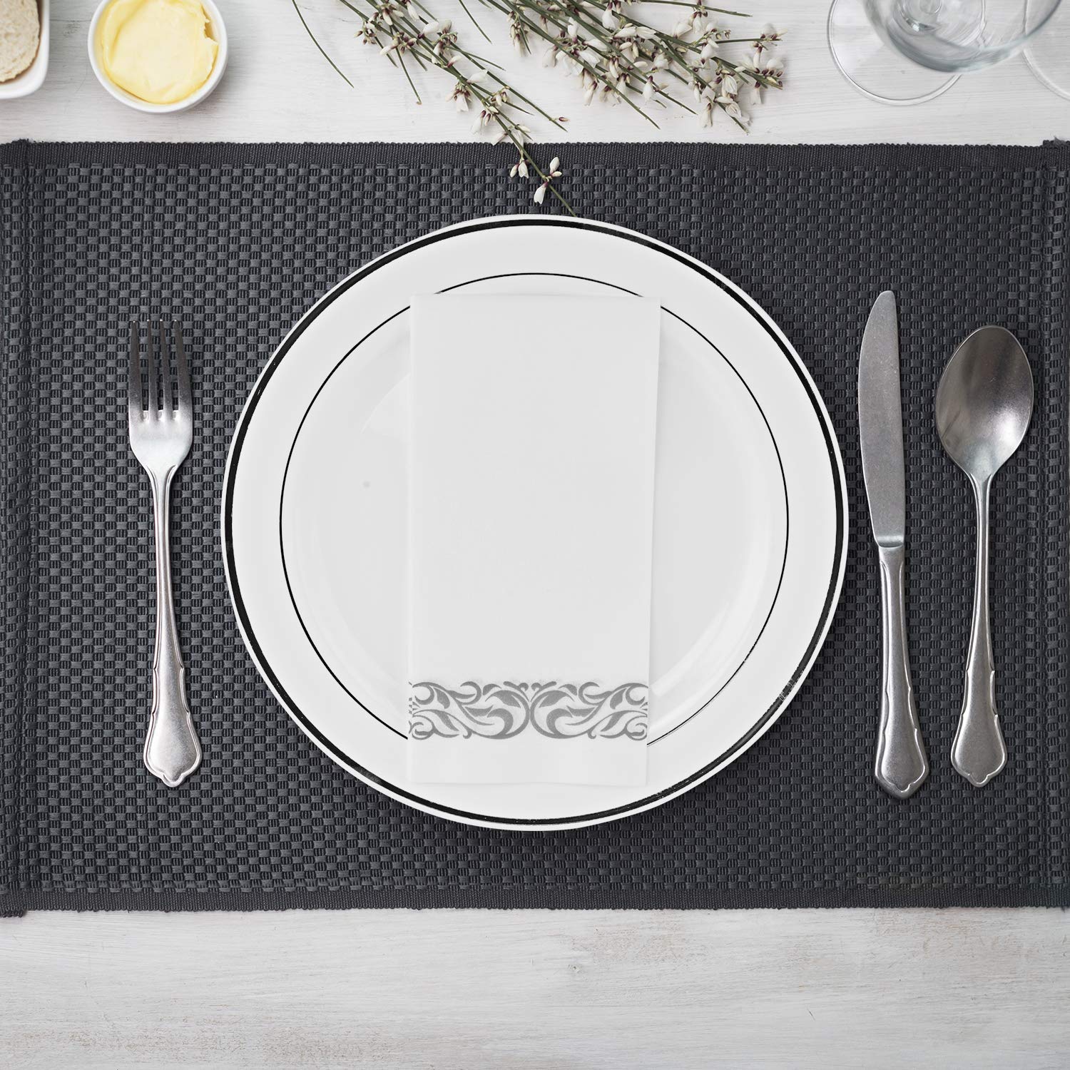 The white napkins are printed with delicate silver trim decorative design, adding an elegant and stylish atmosphere to your party, dining table, or bedroom. Extra durable paper napkins offer guests top-notch comfort and luxury
