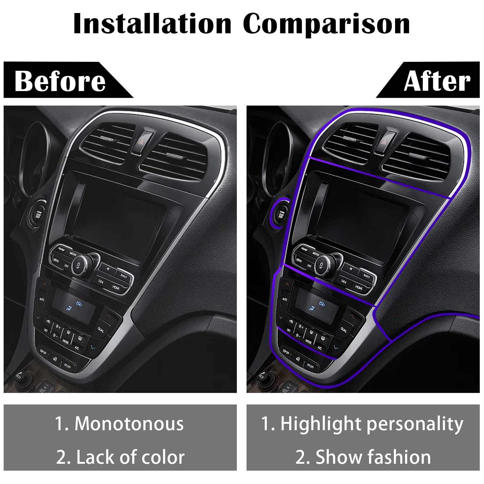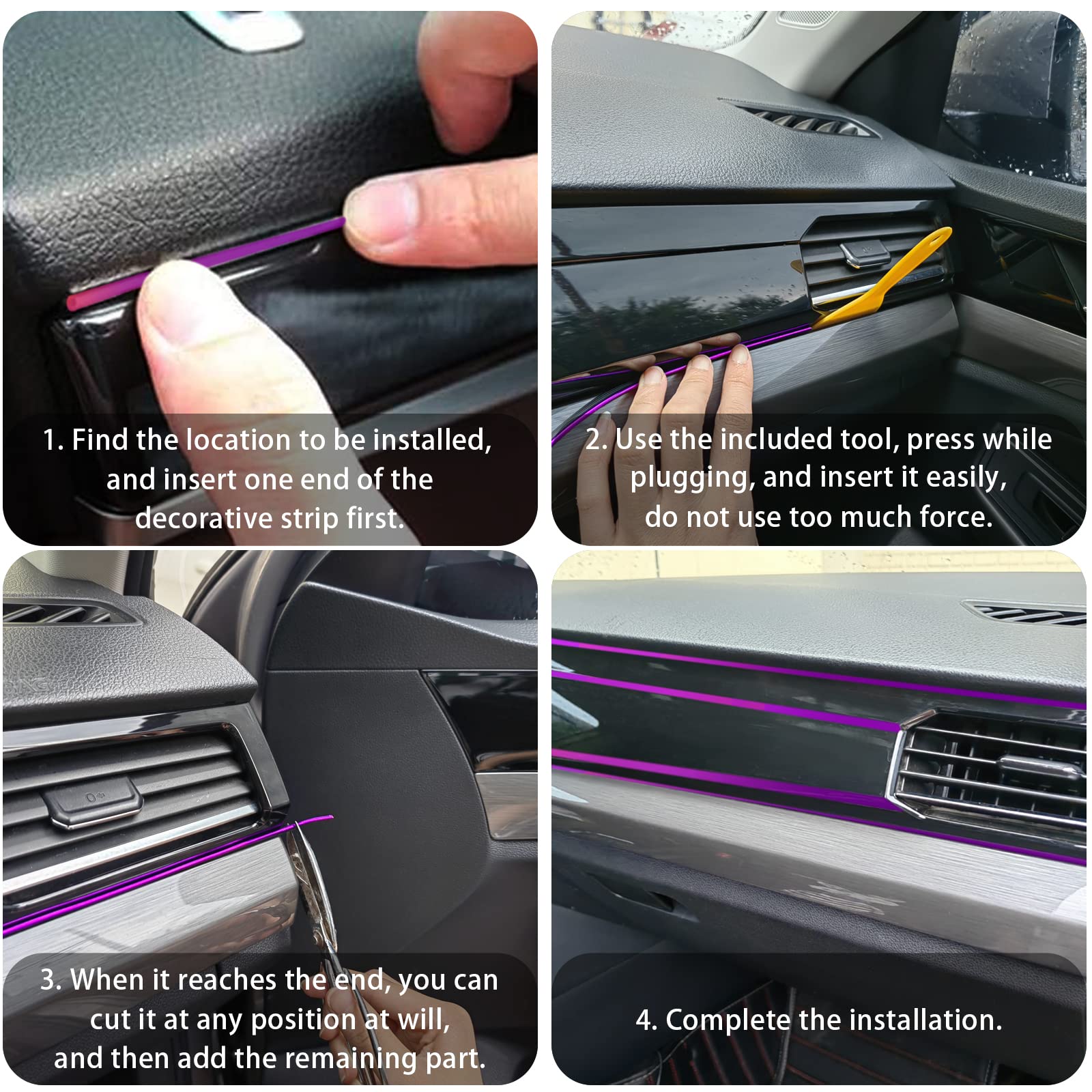 Interior Strip Size: The length of the trim strip is 10 meters, about 33feet, which is enough to use in your car interior, dashboard, door, steering wheel, center console, etc. Also easy to trim to the right length you need.